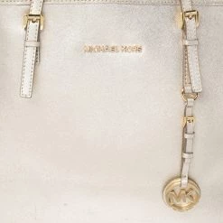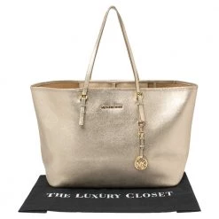 Functional and stylish, Micheal Kors’ collections capture the effortless, nonchalant finesse of the modern woman. Crafted from leather in a metallic gold hue, this chic Jet Set tote has a spacious interior. The sleek, understated silhouette is punctuated with gold-tone hardware.