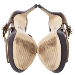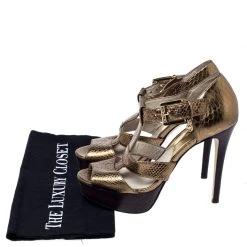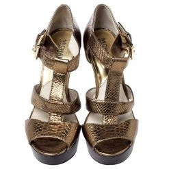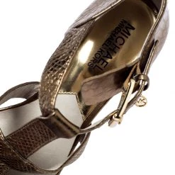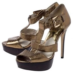 Flaunt these fabulous sandals from Michael Kors as step out in style. These python-embossed leather sandals are a high-end fashion item that you need to own now. With a strong and durable rubber sole and high heels, these uber-stylish sandals are perfect for any season. Keep it glamorous in this pair of gold sandals designed exclusively for you.