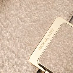 Michael Kors creates this lovely clutch that delivers glamour and style. Crafted from metallic gold Saffiano leather, it is held by a single shoulder strap. It has a front flap with gold-tone closure that opens to a fabric and leather interior with a zip pocket and card slots.