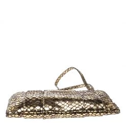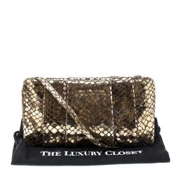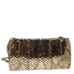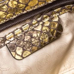 Michael Kors shoulder bag is ideal for parties and evening outings when all you need to carry is your cell phone, lipstick and keys. The exterior of the bag is crafted with metallic gold snake embossed suede. Lined with fabric, this elegant piece is held by a single shoulder strap.