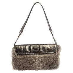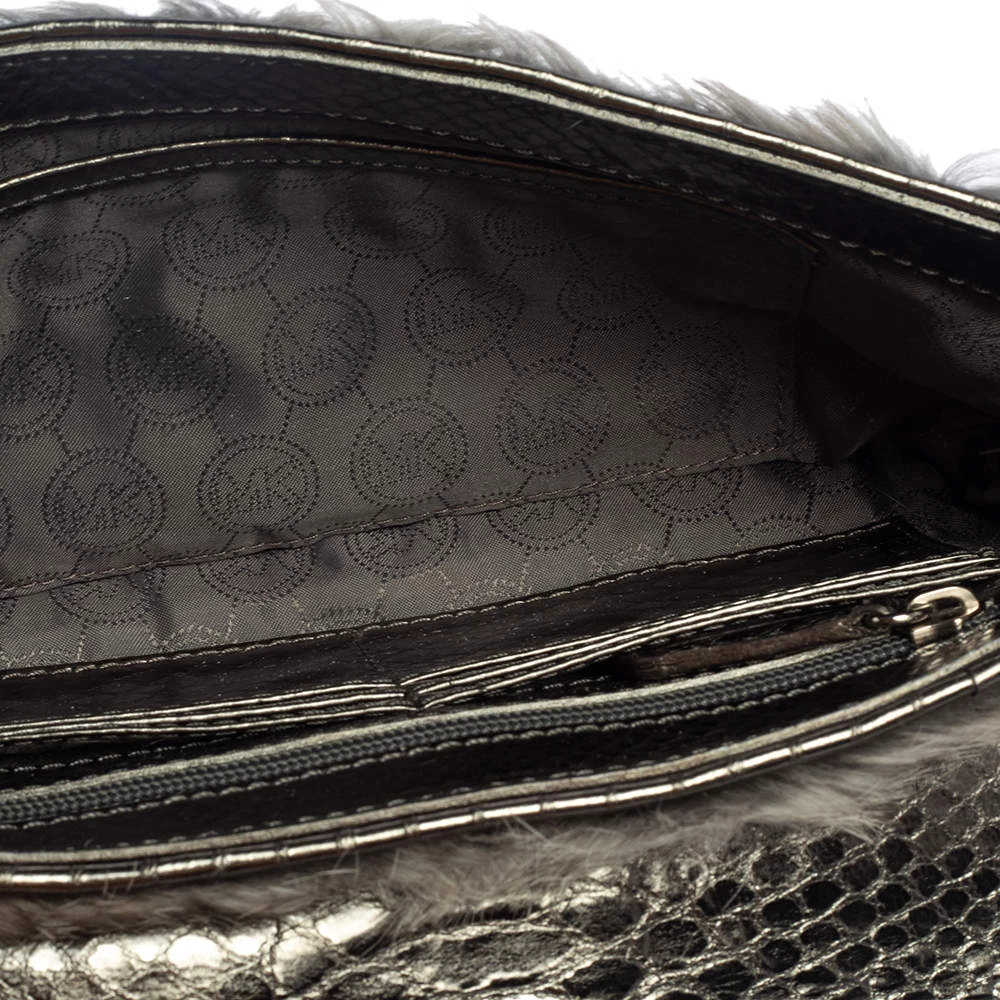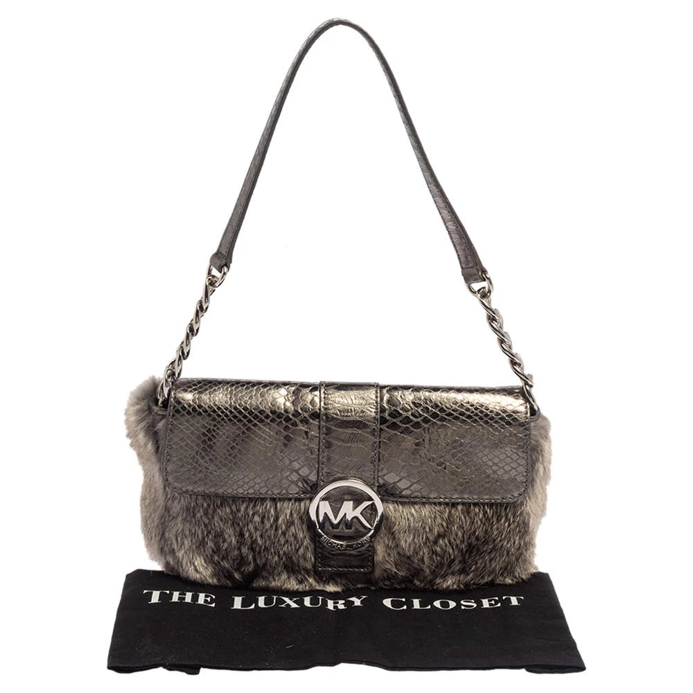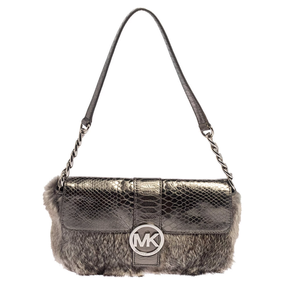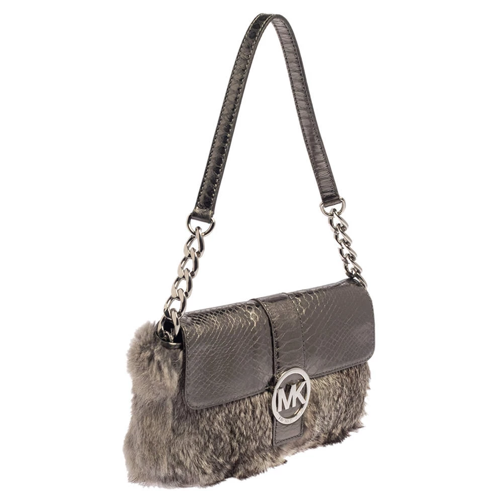 This Fulton Baguette by Michael Kors brings the element of luxury through an elegant design. It is crafted using python-embossed leather and rabbit fur. The bag is held by a single handle and its interior is lined with fabric. The MK logo at the front adds the right finish.