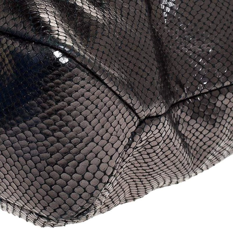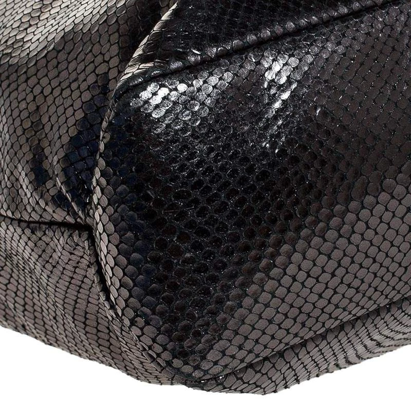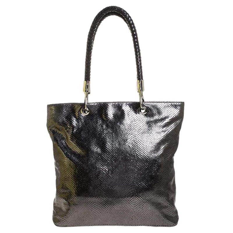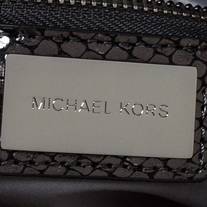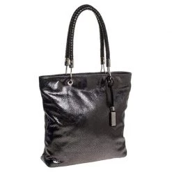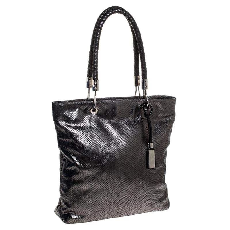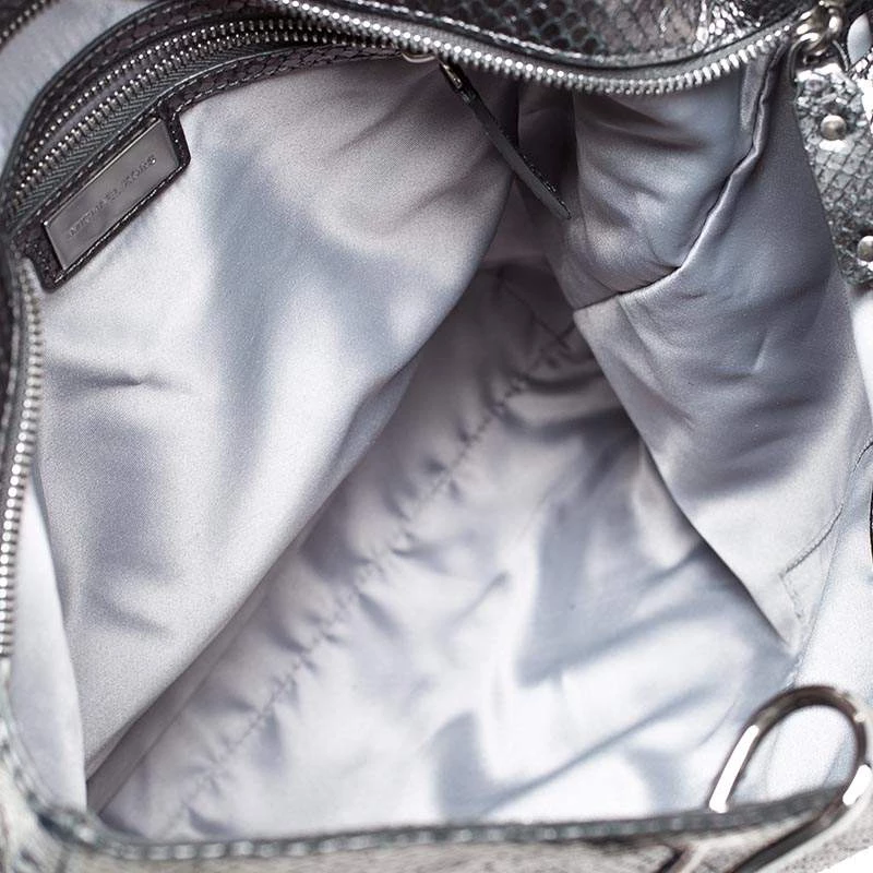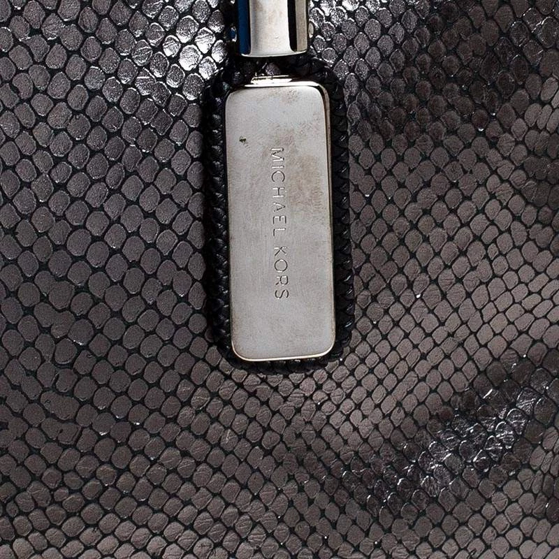 This Michael Kors tote comes in a lovely shade of metallic grey. It has been crafted from snakeskin-embossed leather, features braided handles, luxurious interior lined with satin, zip pocket, brand tag and silver-tone hardware. It is a great option for everyday use.