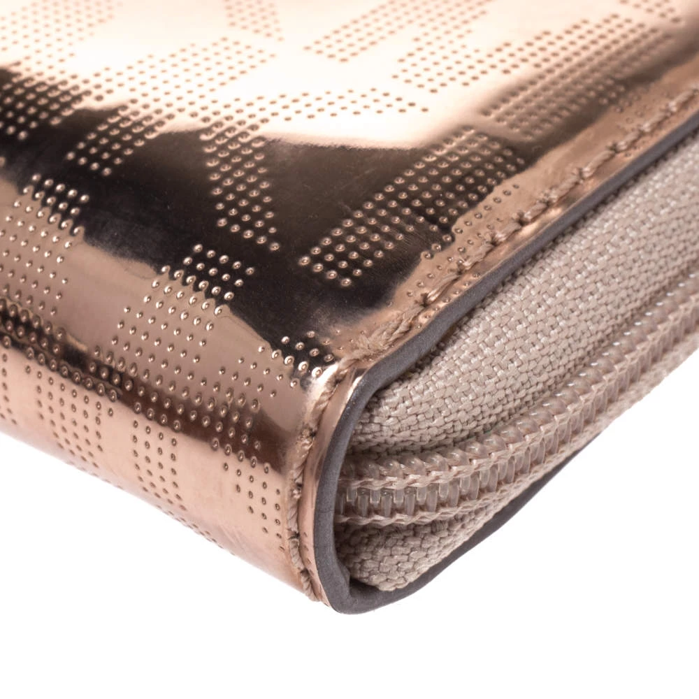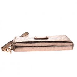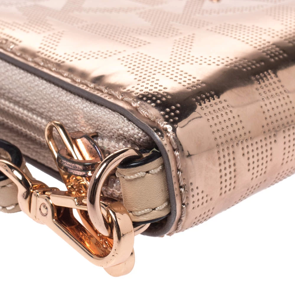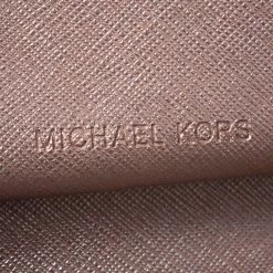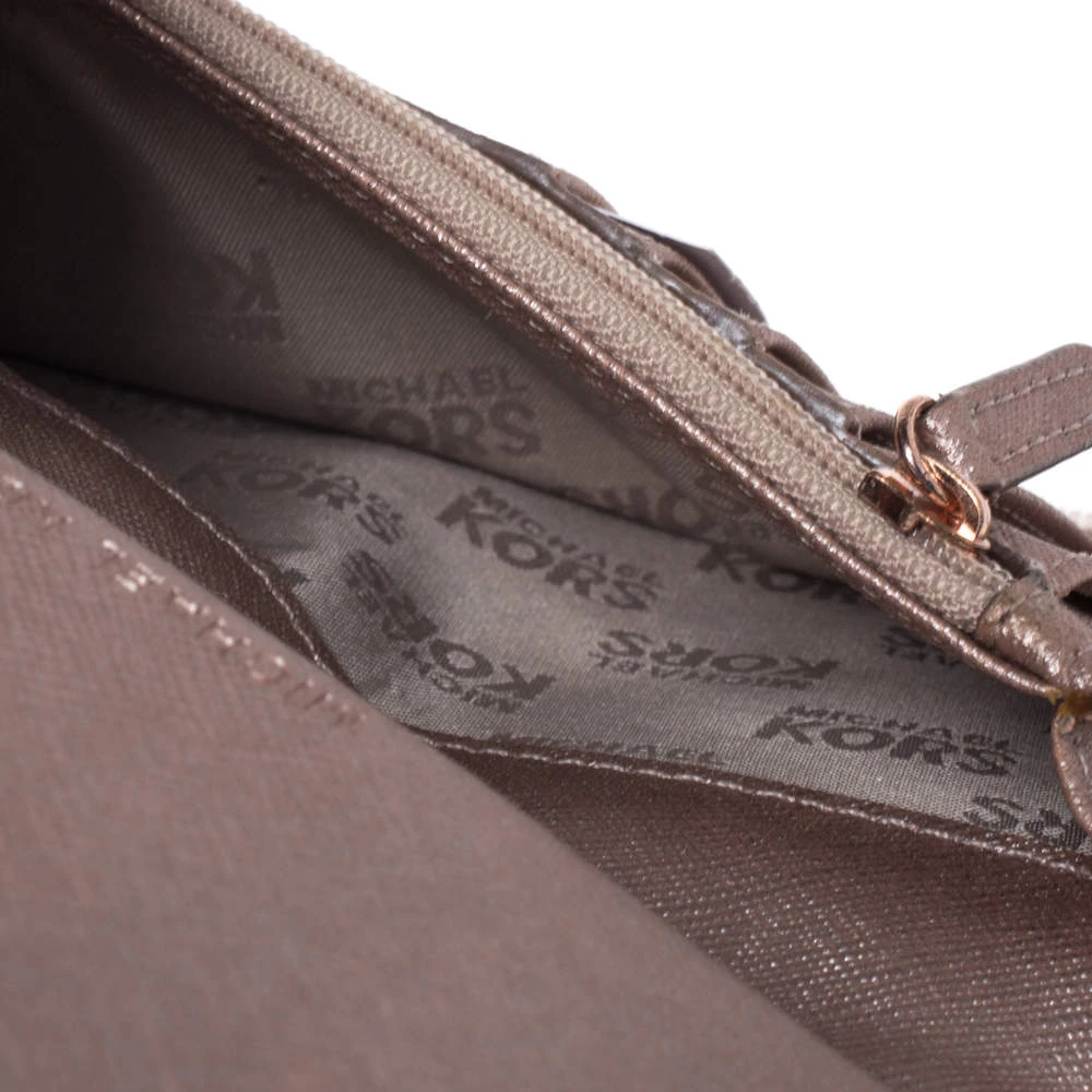 Luxe and classy, this zip-around wallet is from the house of Michael Kors. It has been crafted from patent leather featuring a metallic rose gold exterior and equipped with a zipper leading to multiple slots to neatly carry your essentials. The wallet is complete with the brand plaque at the front.
