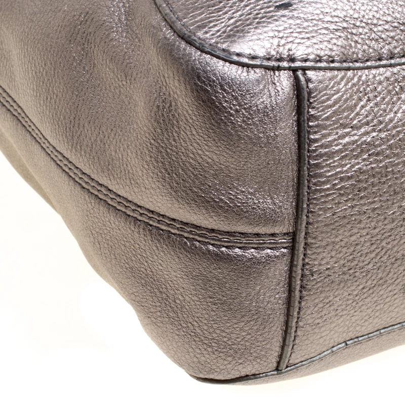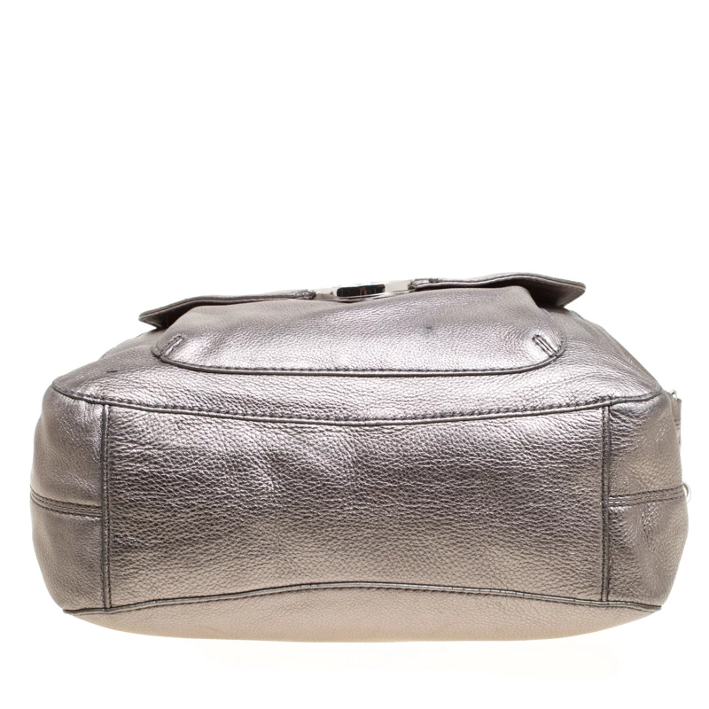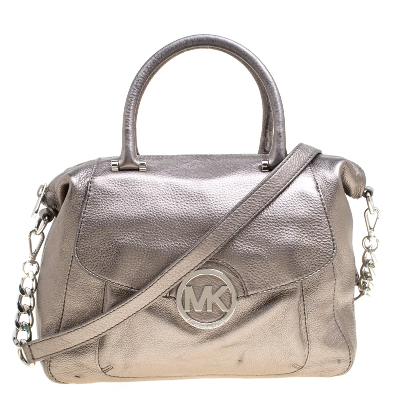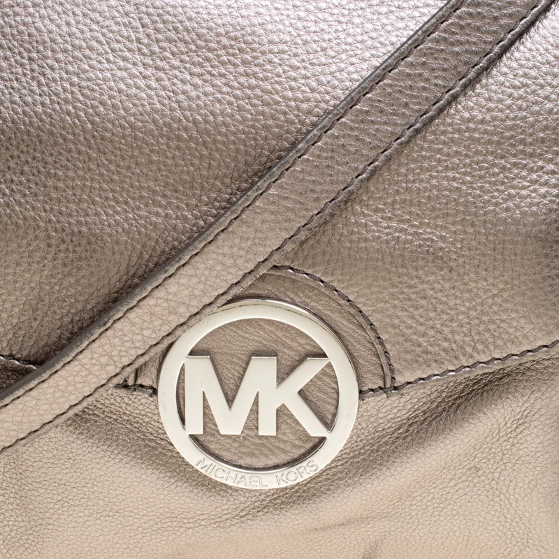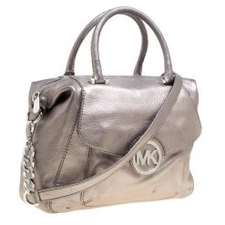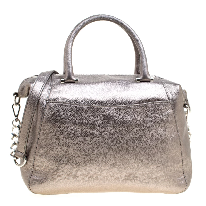 You’re all set to shine and sparkle with this stunner of a bag from Michael Kors. This shimmering metallic silver bag is crafted from leather and features an elegant silhouette. It flaunts a front flap closure with a silver-tone MK logo detailing, dual top handles and a detachable leather and chain shoulder strap. The top zipper opens to reveal a spacious fabric-lined interior that can house all your daily essentials. Carry it for your fashionable outings and let it do all the talking!