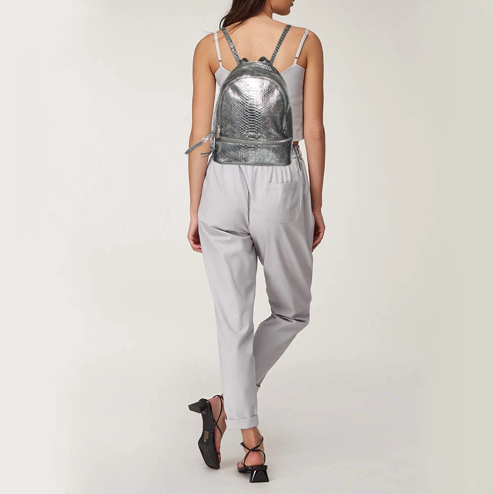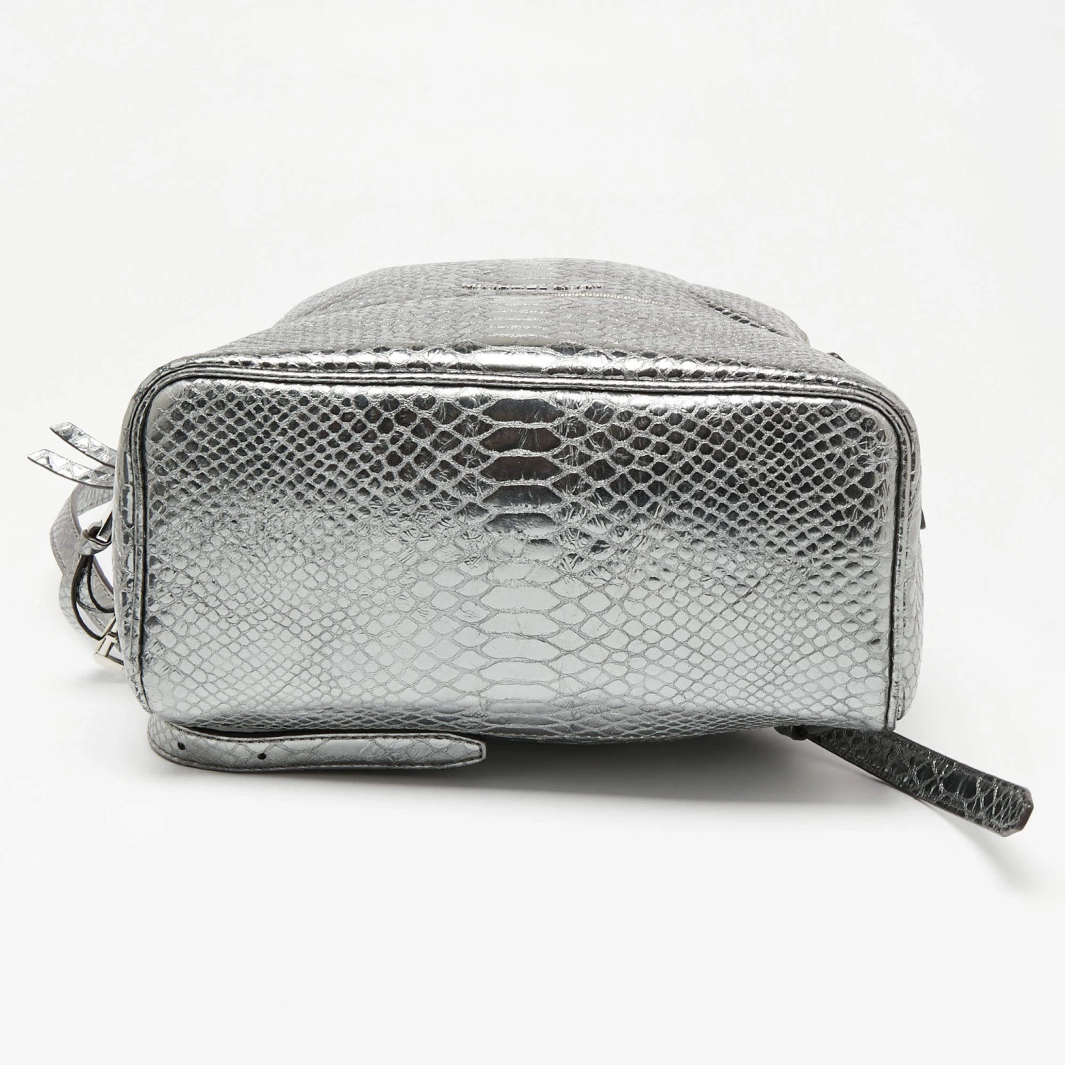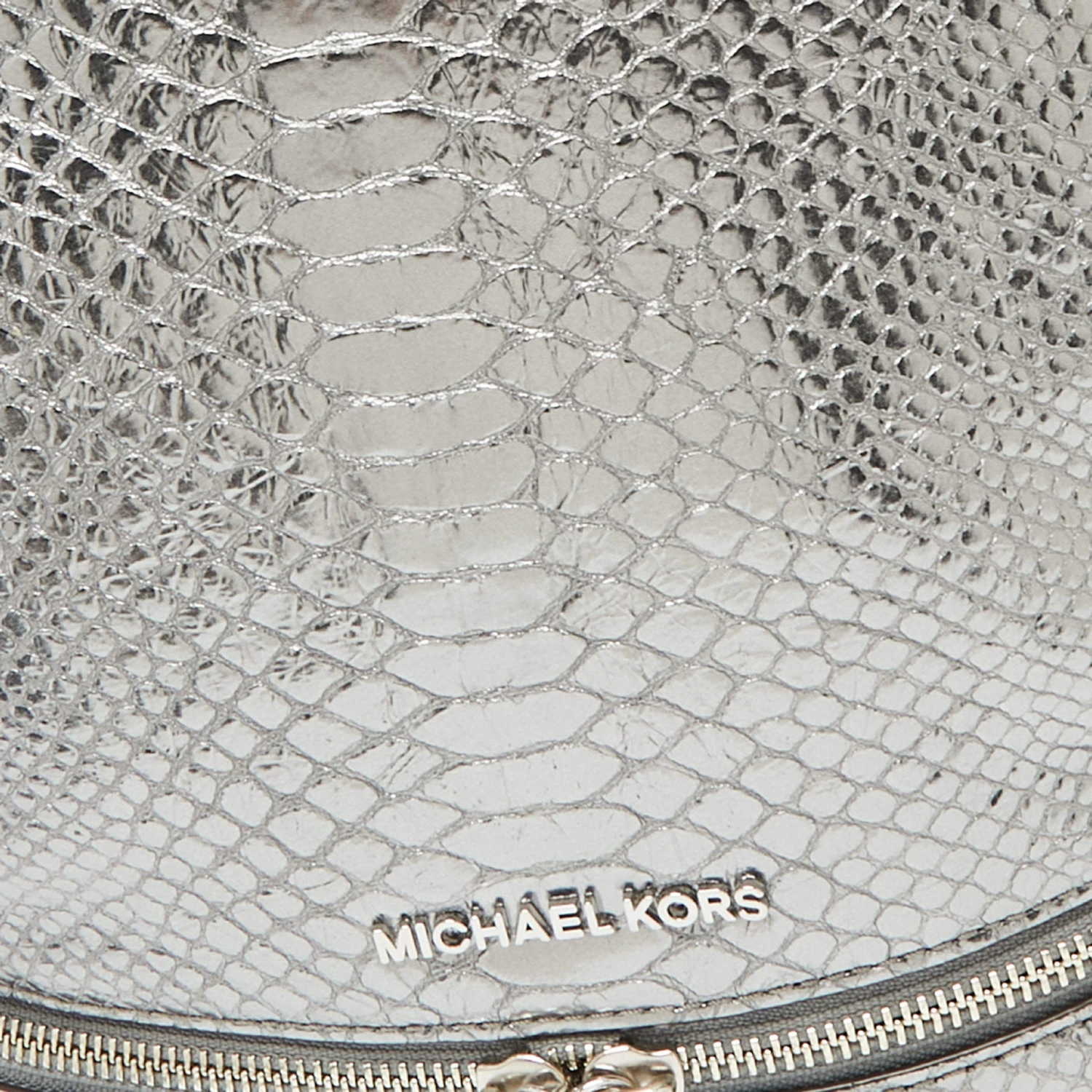 Flaunt your elevated choice in fashion with this Rhea backpack from Michael Kors. It has been crafted from python-embossed leather and detailed with an exterior zipper closure at the front. The designer backpack for women is equipped with a top handle, adjustable shoulder straps, and a spacious interior.
