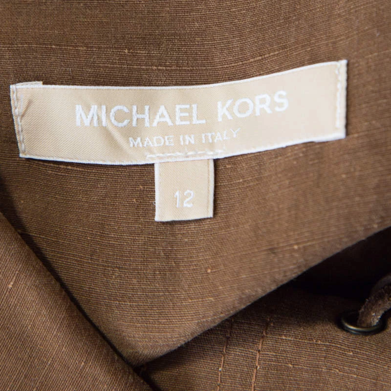 Stay up-to-date with the latest trends by wearing this Michael Kors Safari dress with suitable accessories. Quintessential for all seasons, this brown piece will be your main, no matter what the occasion is. An ideal balance of comfort and style, this outfit is tailored from blended fabric.