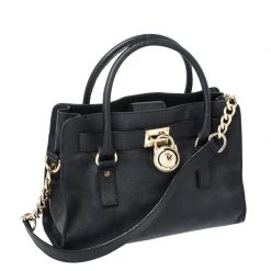 This stylish Hamilton tote from Michael Kors is a worthy buy. It has been crafted from leather in a classy black shade and decorated with an engraved padlock on the front. The bag has two handles, a shoulder strap, and a spacious nylon interior. This creation is ideal for everyday use.