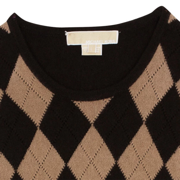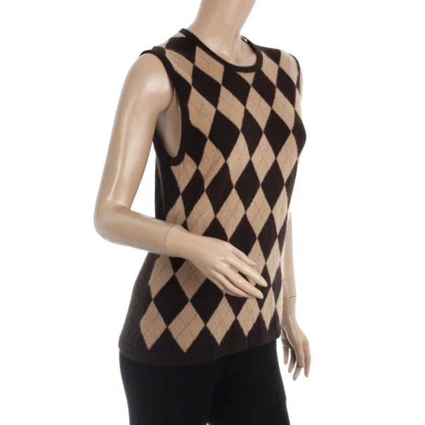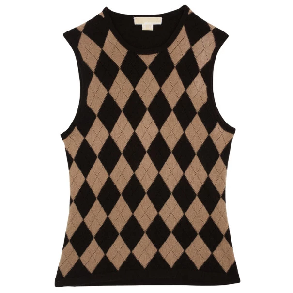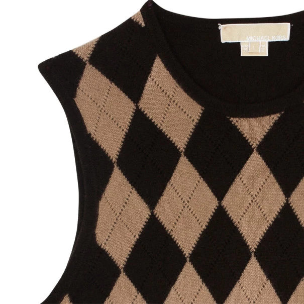 Pair this Micheal Kors Cashmere Knit Pull Over with a button down shirt for the ultimate preppy look. This sleeveless sweater is made from 100% cashmere and features a plaid design and a round neckline.Original Retail Price:US $290