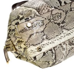 This stunning bag from Michael Kors has been crafted to deliver style and glamour. Made with exotic python skin, it flaunts cream and black hues. It is held by dual handles, has a flap with a turn-lock closure, a spacious interior lined with quality leather and equipped with enough space to hold your essentials. This must-have bag is finished impeccably with gold-tone hardware.