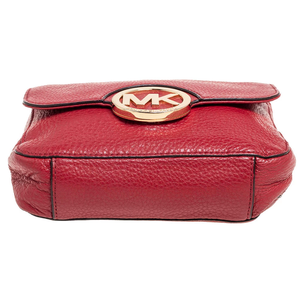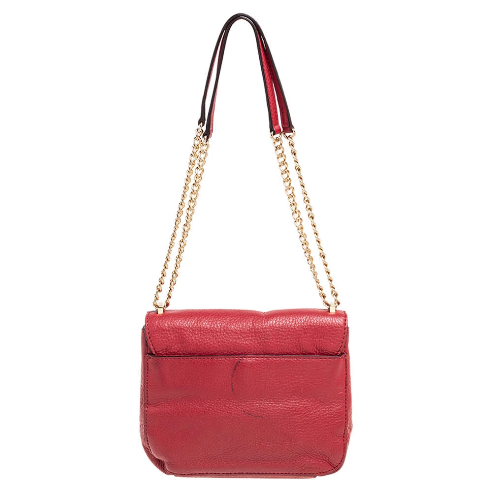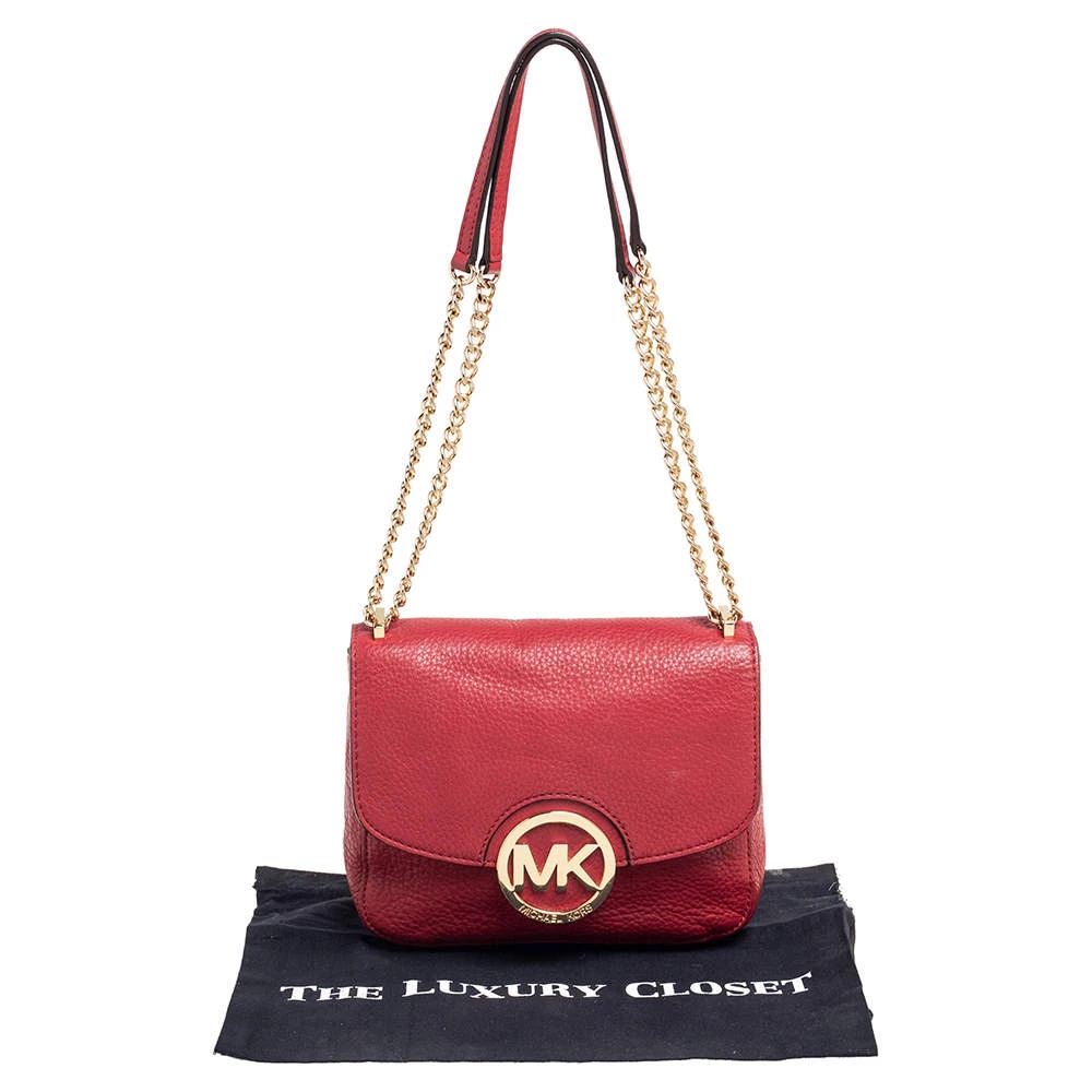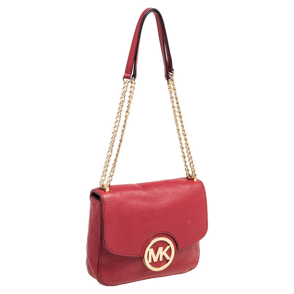 This shoulder bag from the House of Micheal Kors is classy in every way. It is made from red leather on the exterior with a logo detail embellishment attached to the front. It comes with chain straps and gold-toned hardware. Carry this chic bag and elevate your style.