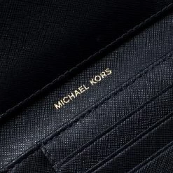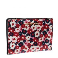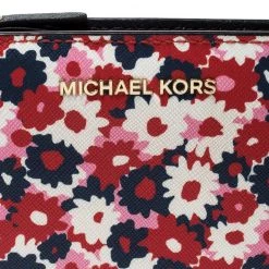 This excellent wallet from the house of Michael Kors is meticulously crafted from floral printed leather and designed with gold-tone logo on the front. The wallet has snap buttons that reveal leather and fabric-lined interior featuring multiple slots and a zip pocket. This piece is definitely chic and posh.