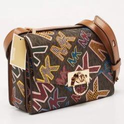 The trendy Grafitti print makes this Michael Kors bag striking. Made from coated canvas and leather, it is paired with a shoulder strap, a branded lock closure on the front, and an Alcantara-lined interior.
