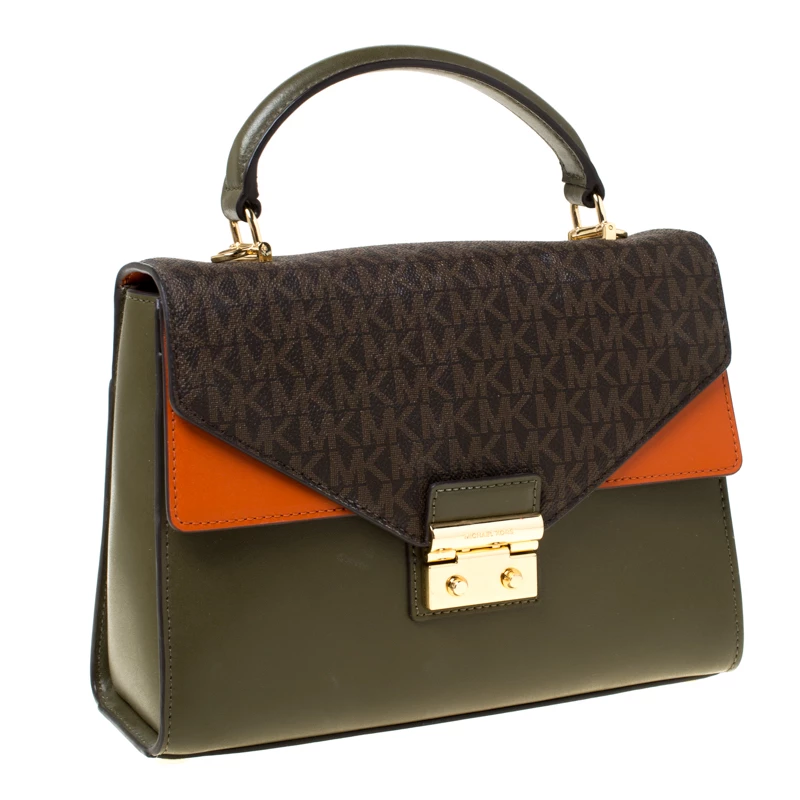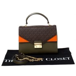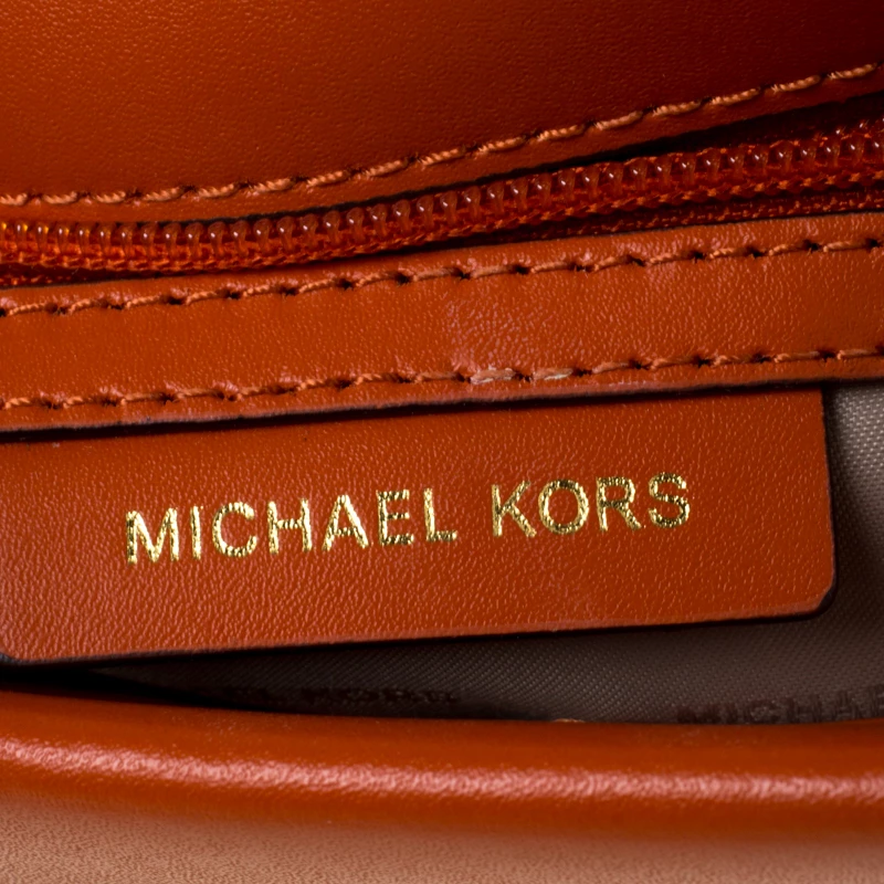 You will enjoy parading this bag from Michael Kors. It comes made from leather and features a single top handle, a shoulder strap and a signature canvas flap. It is equipped with a nylon-lined interior meant to hold all your daily essentials with ease.