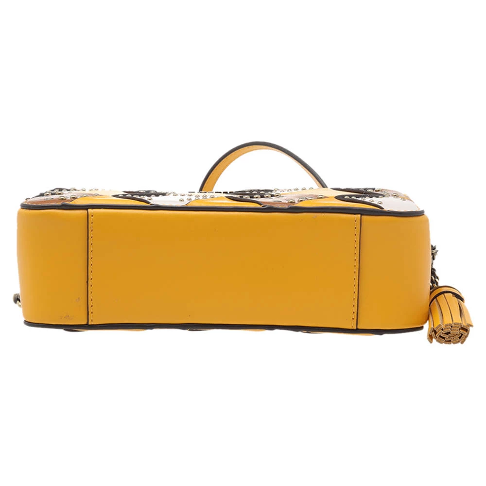 Bags are more than just instruments to carry one’s essentials. They tell a woman’s sense of style and the better the bag, the more confidence she gets when she holds it. Prada brings you one such fabulous bag meticulously made from multicolored leather. This camera crossbody bag has a fabric interior, the brand logo detailing and gold-tone studs on the exterior, and a shoulder strap.