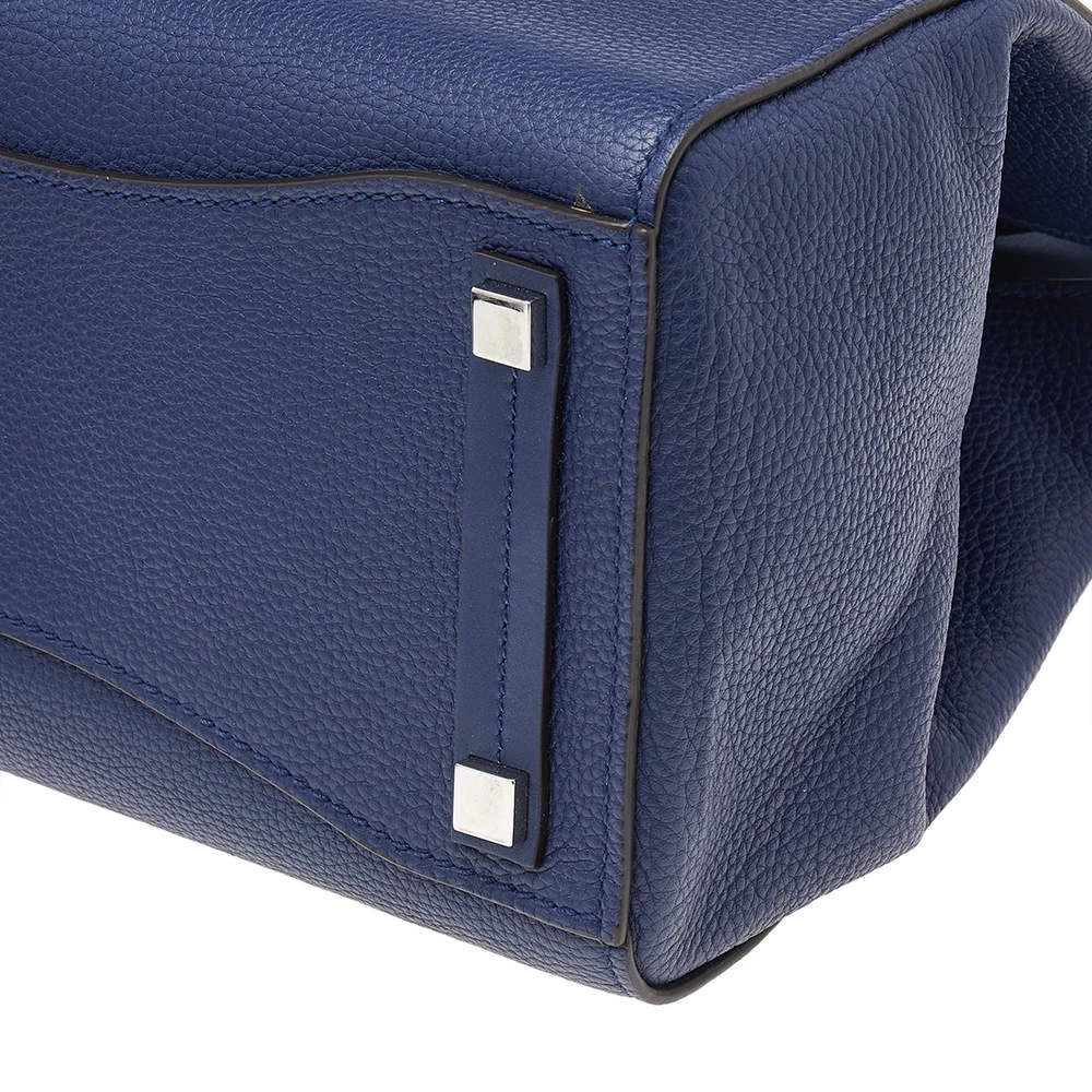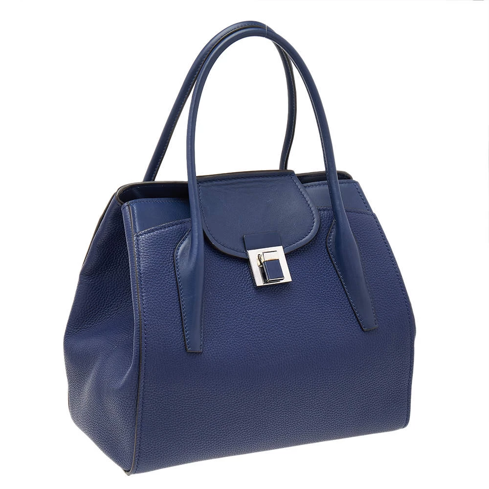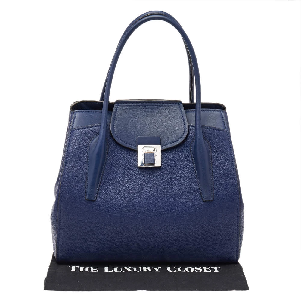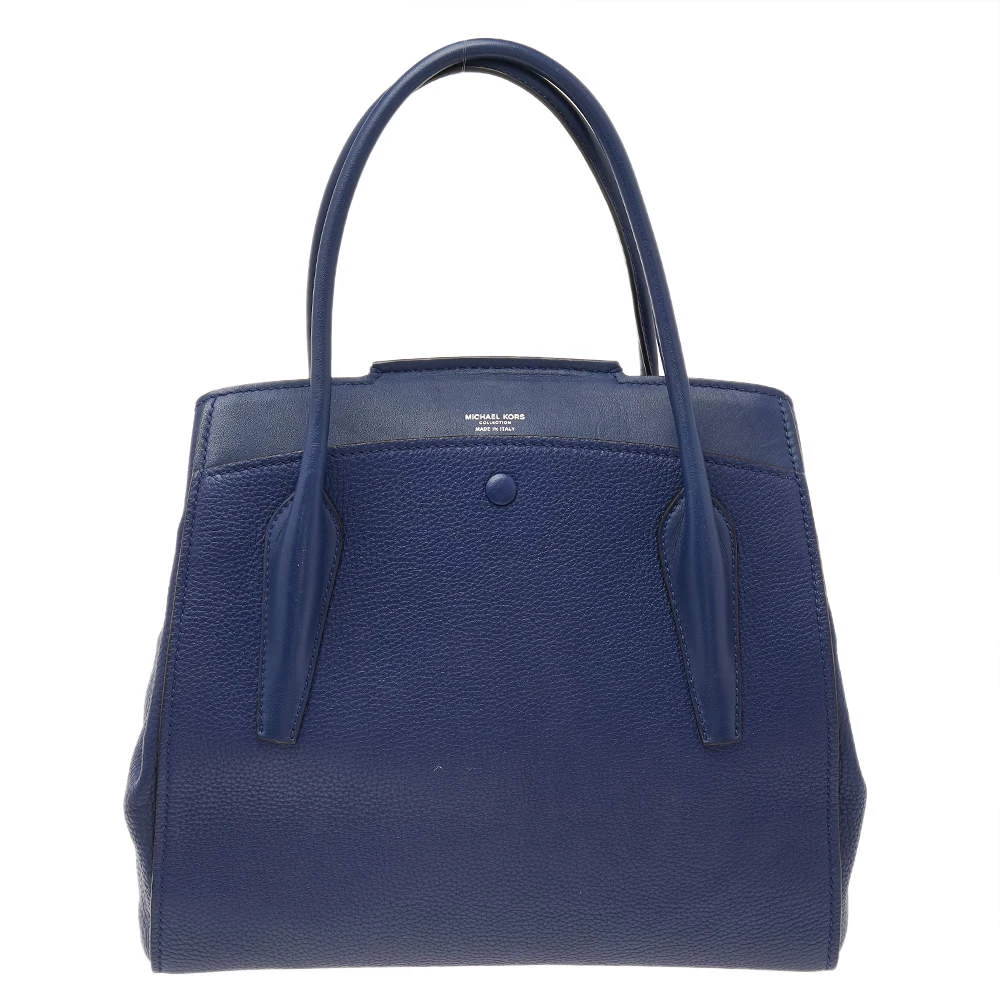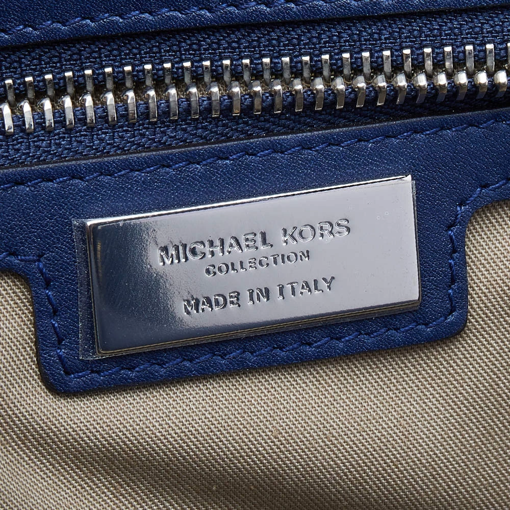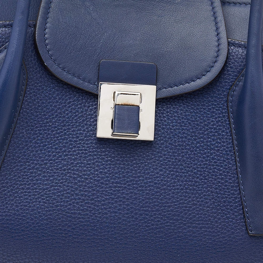 This navy blue Bancroft satchel comes from the fashion house of Michael Kors. Crafted from leather, it features a durable fabric-lined interior that ensures to house all your essentials. Designed with a flap closure, it is secured by a metal lock and held by two handles.
