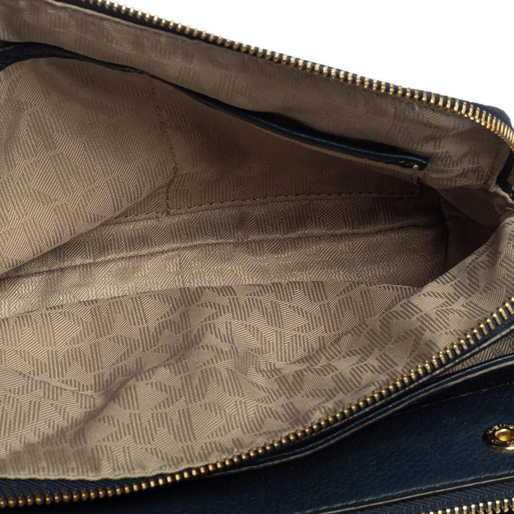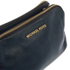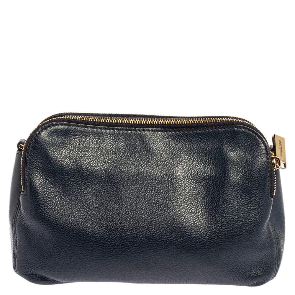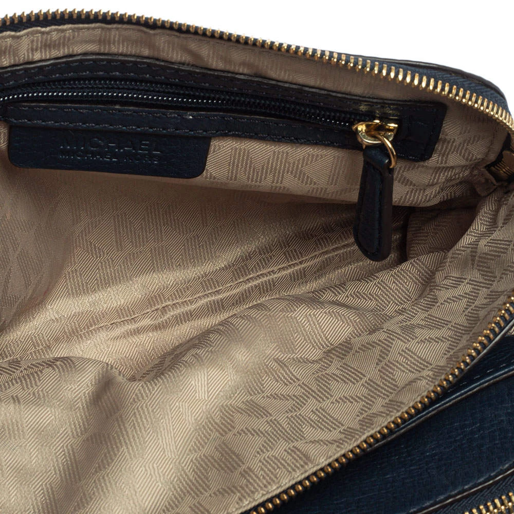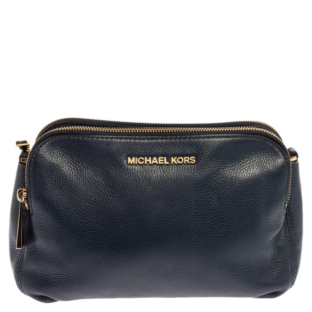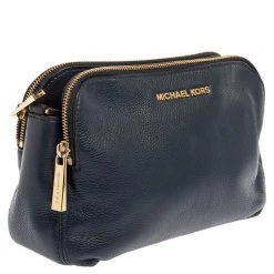 Pair this Michael Kors Bedford crossbody bag with any outfit and look fashionable. The navy blue bag is crafted from leather and features a gold-tone brand logo on the front. It has dual zip closures at the top and opens to a fabric-lined interior that will dutifully hold all your daily essentials. It is complete with a detachable shoulder strap.