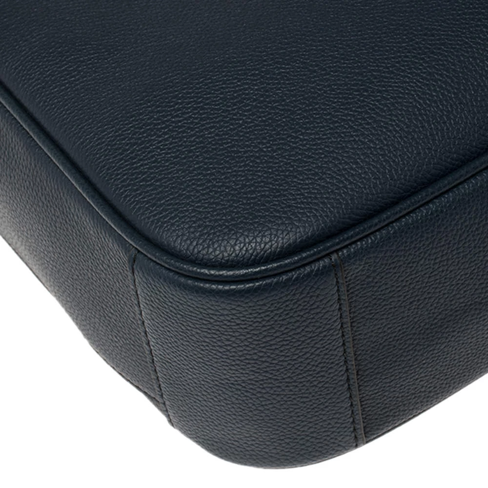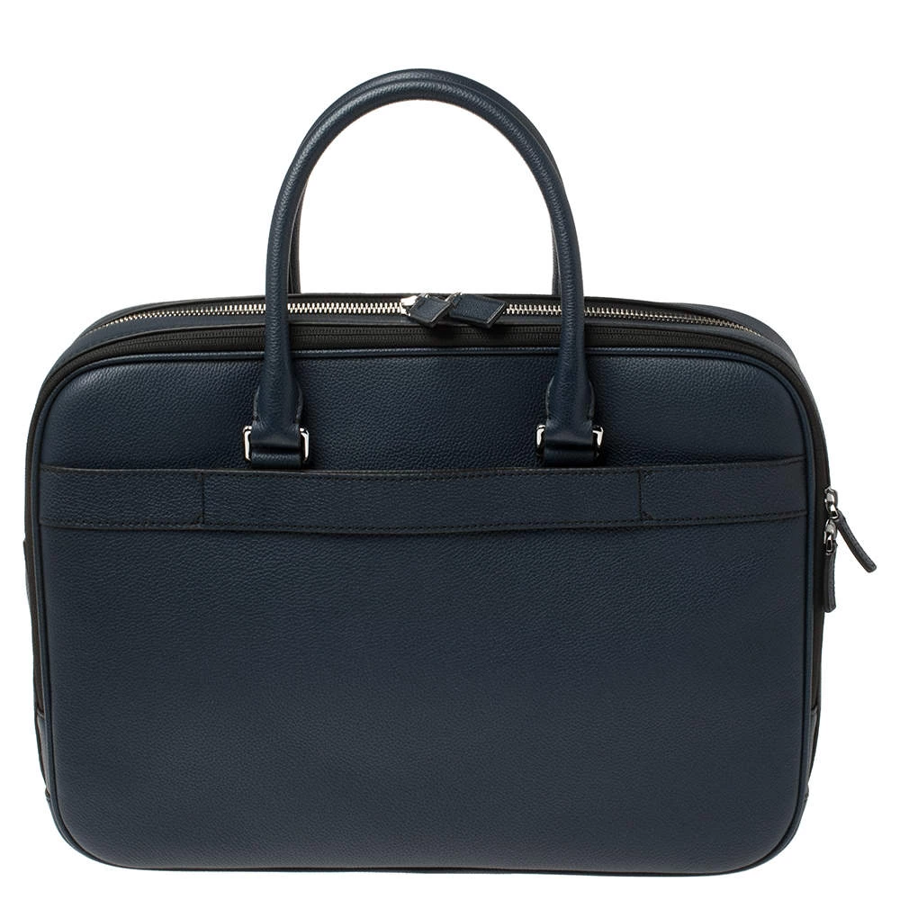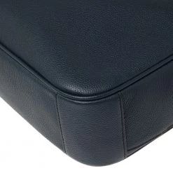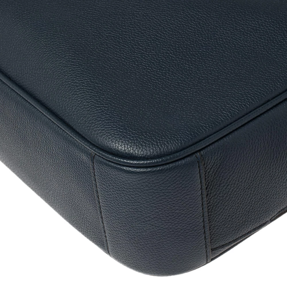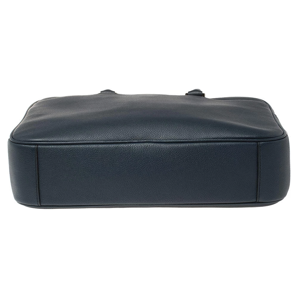Designed in navy blue leather, featuring a slip pocket at the front, this multi-functionality briefcase from Michael Kors is smart and stylish. The zip fastenings on the top open to a nylon-lined interior that is equipped with a slip pocket and the brand label. This subtle creation is complete with dual top handles.