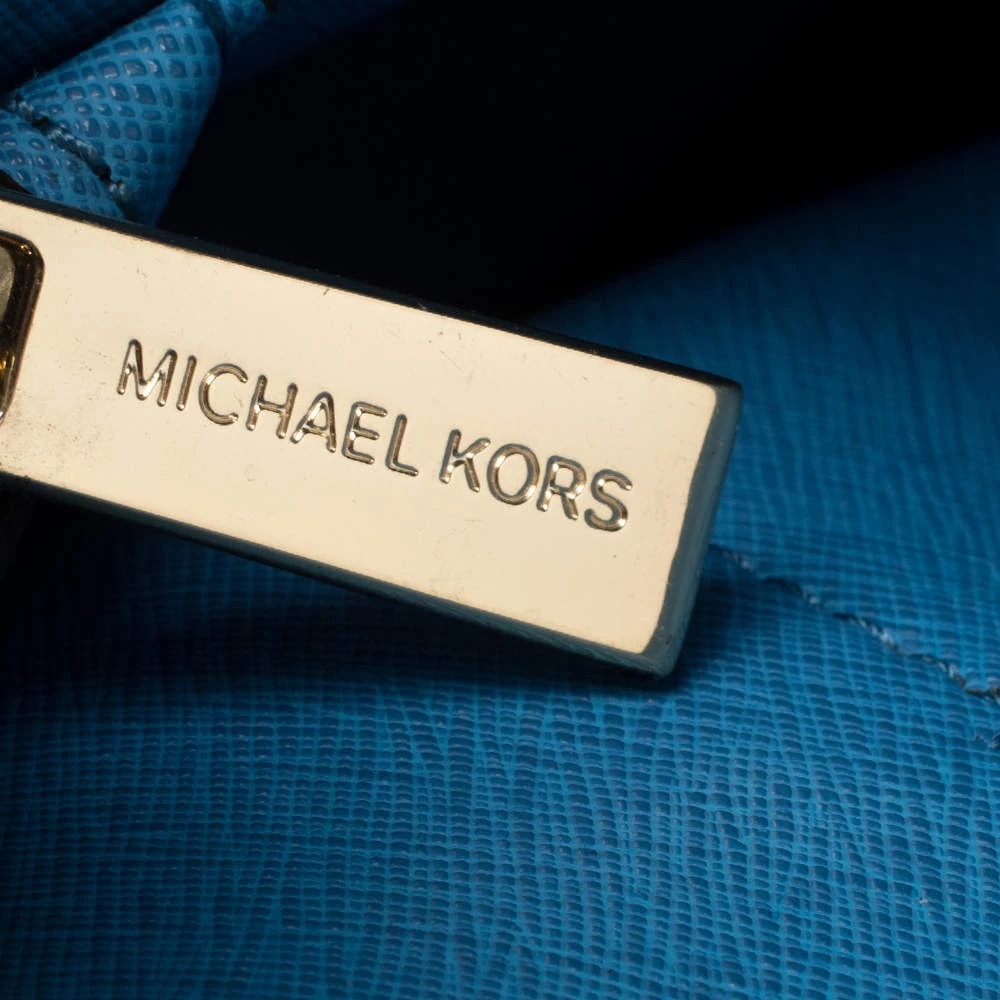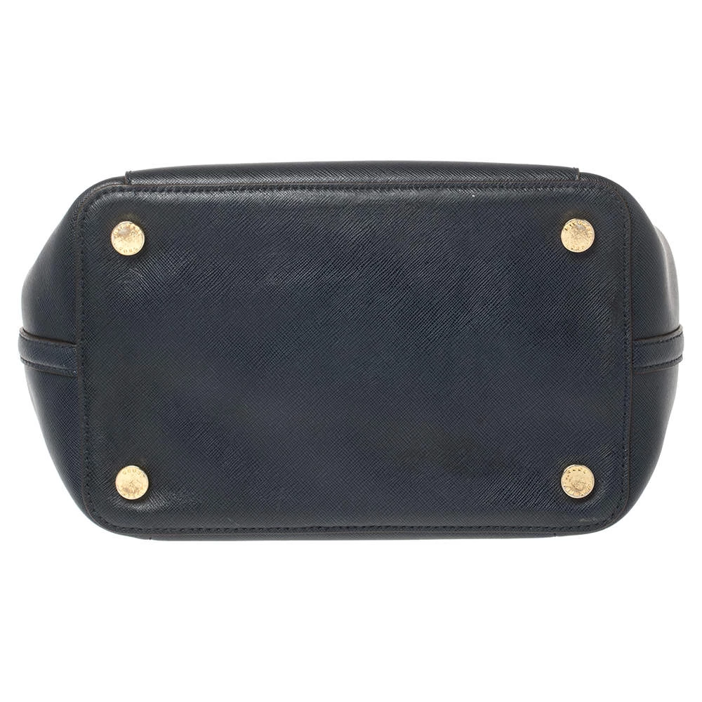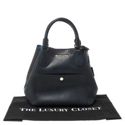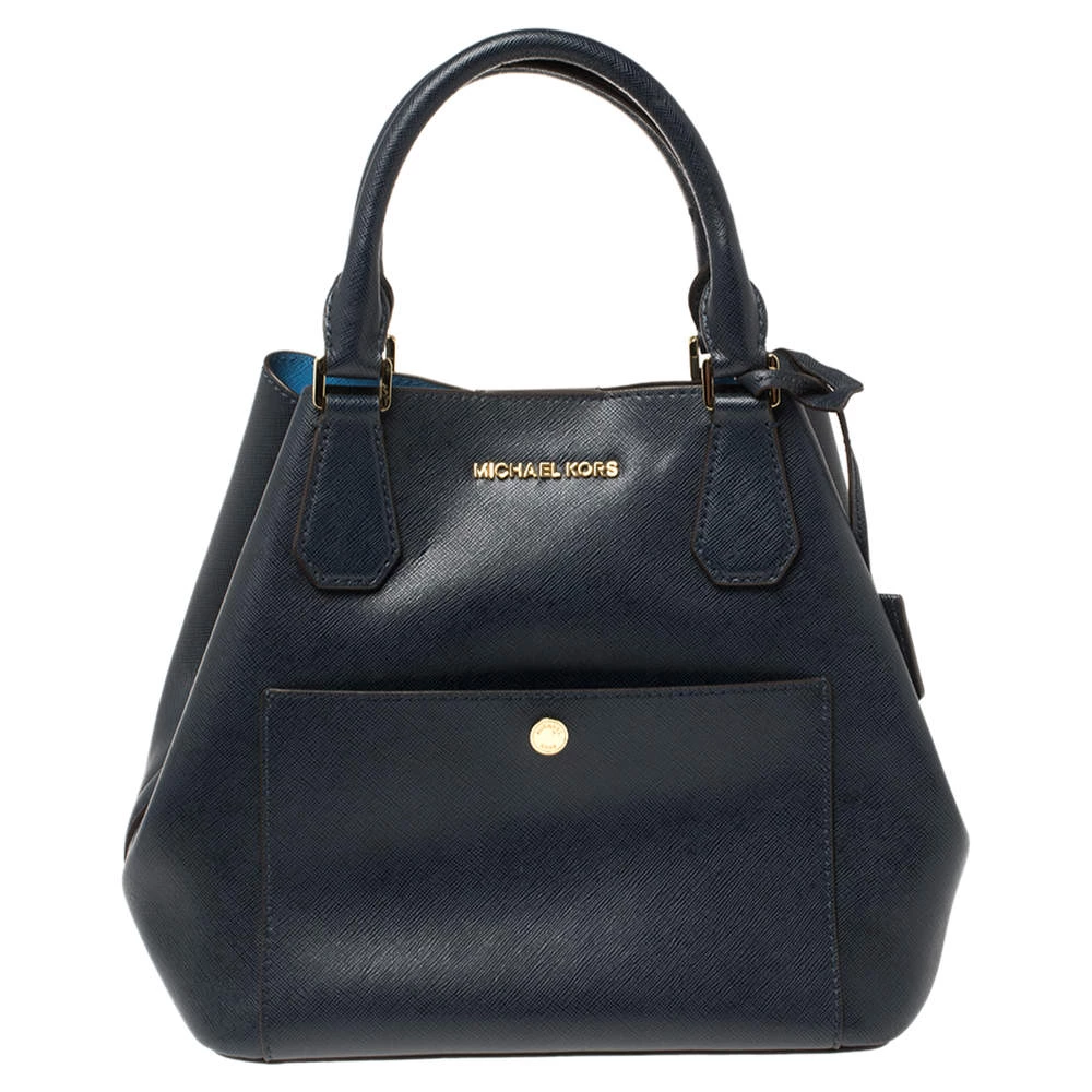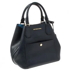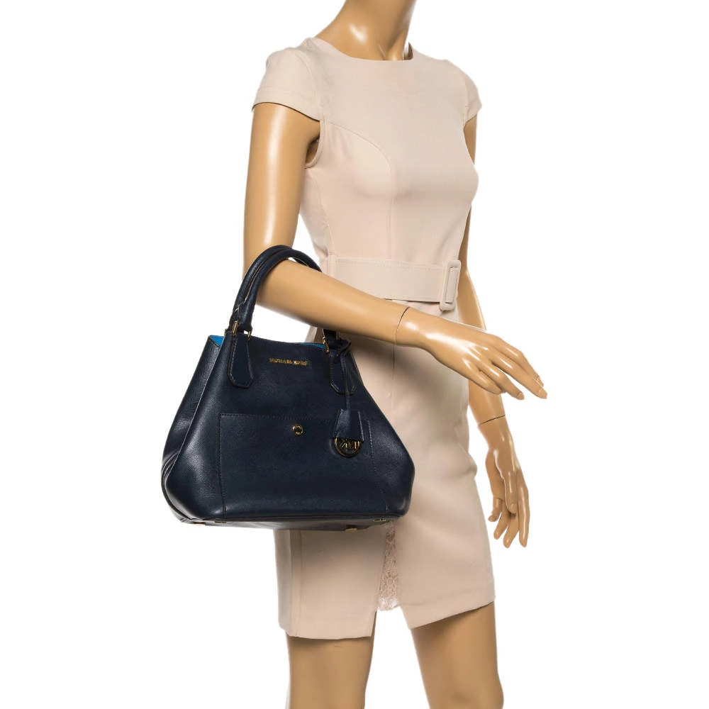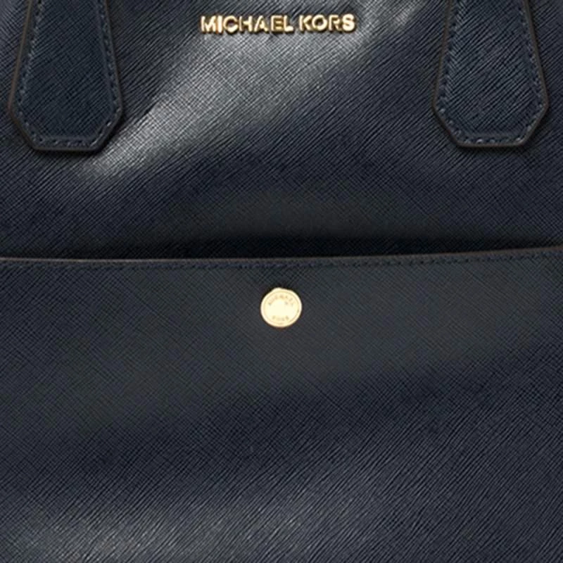Elegant and stylish, Michael Kors collections capture the effortless, nonchalant finesse of the modern woman. Crafted from leather in a navy blue hue, this chic tote features a handy front pocket and a spacious interior. The sleek, understated silhouette is punctuated with gold-tone hardware.