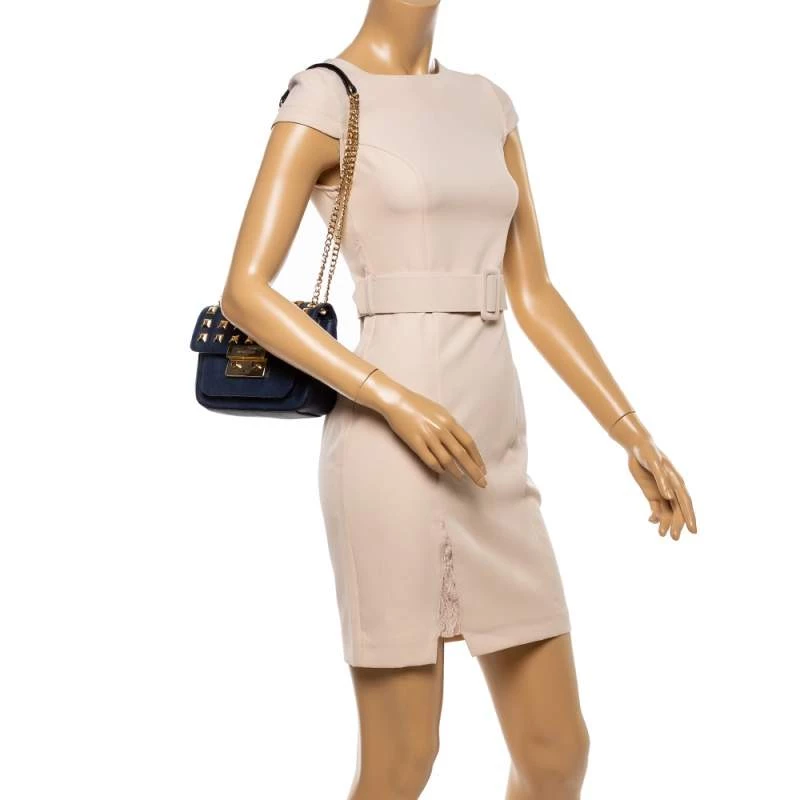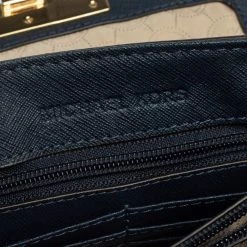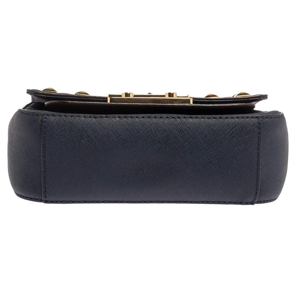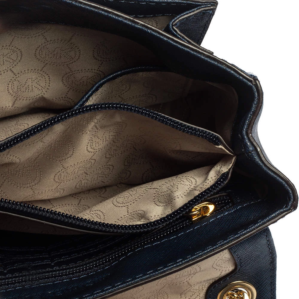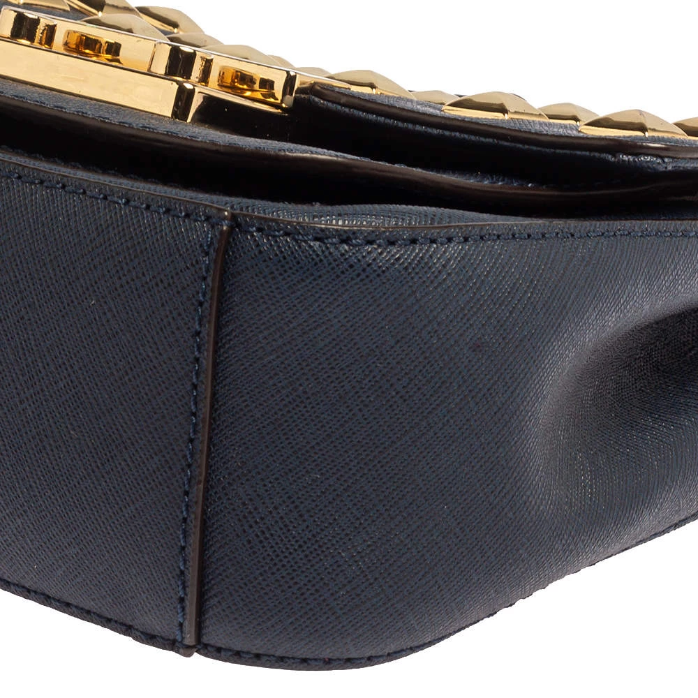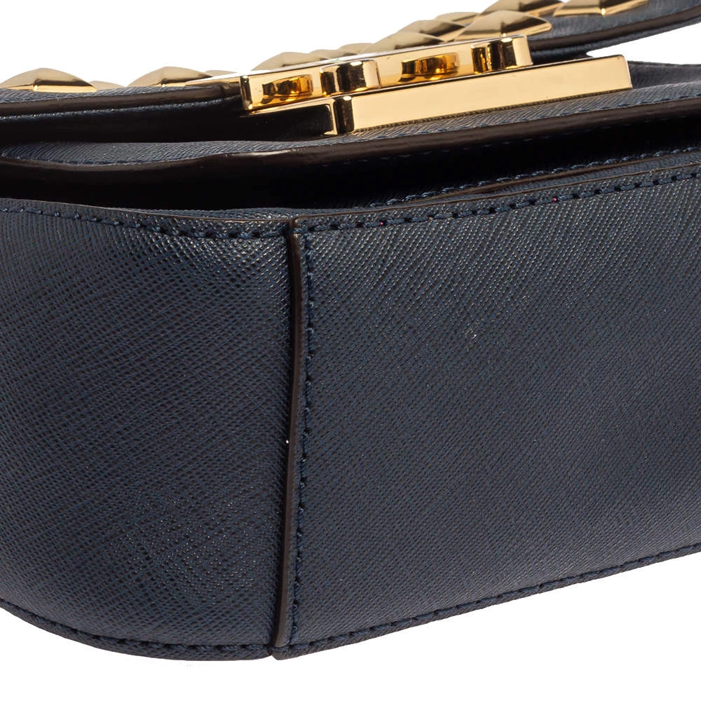 Elevate your style with this gorgeous Sloan shoulder bag by Michael Kors. Crafted from navy blue leather, the bag features studs in gold-tone hardware. It has a flap closure and a nylon-lined interior. This beauty is complete with a chain link.