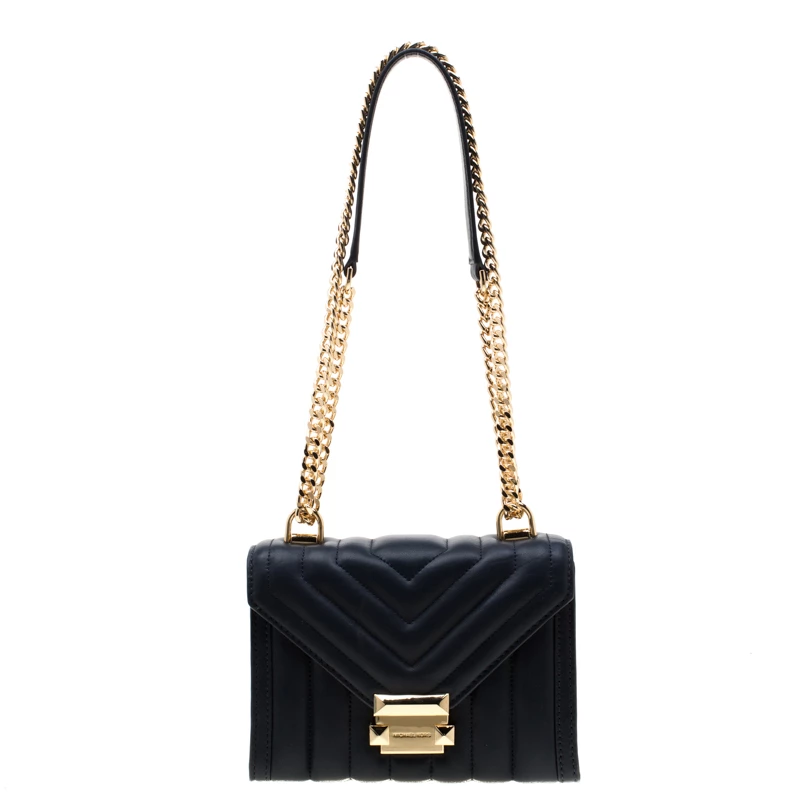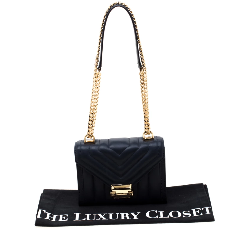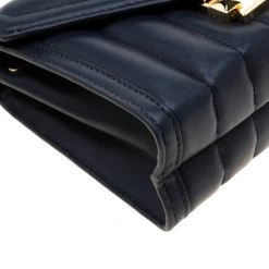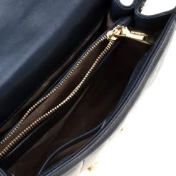 This navy blue bag is crafted from luxurious leather in a gorgeous style. The fabulous fabric lining of the interior defines its durability and functionality. Made by Michael Kors, this is an immaculate balance of sophistication and rational utility.