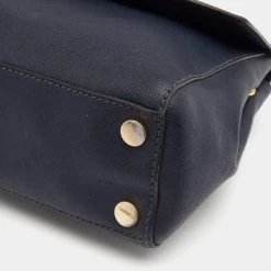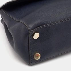 This navy blue bag comes from the fashion house of Michael Kors. Crafted from Saffiano leather, it has a nylon interior that ensures to house your everyday essentials effortlessly. The MK Ava top handle bag is complete with the brand name on the front.