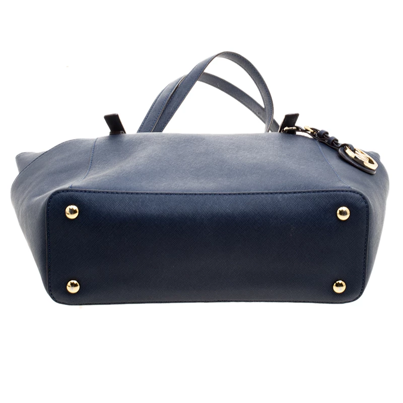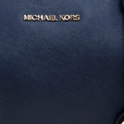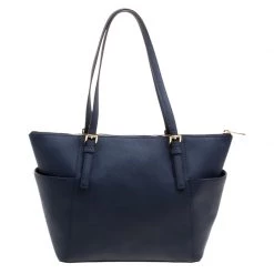 Elevate your style with this gorgeous Top-zip Jet Set tote from Michael Kors. Crafted from blue saffiano leather, the bag features dual top handles, a Michael Kors charm and a slip pocket on each side. It has a spacious fabric lined interior that will hold all your belongings. This beauty is totally worth the splurge!