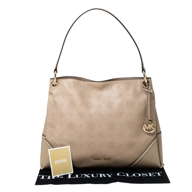 Michael Kors brings you this super-stylish bag that carries a design which will surely delight your tastes. It comes crafted from leather and styled with perforated flower accents, a spacious interior and a single handle.