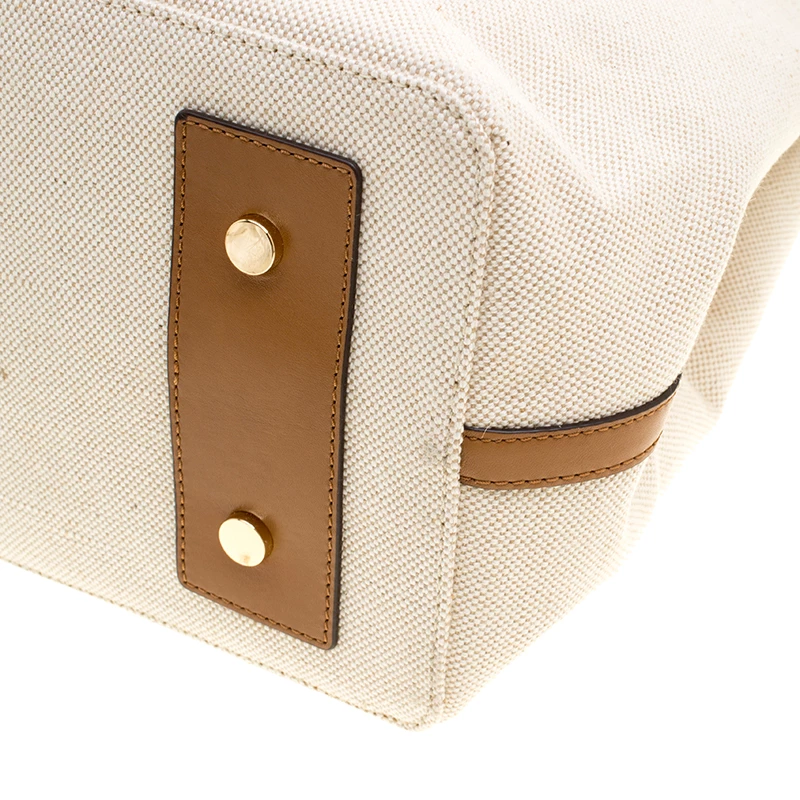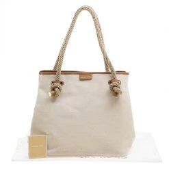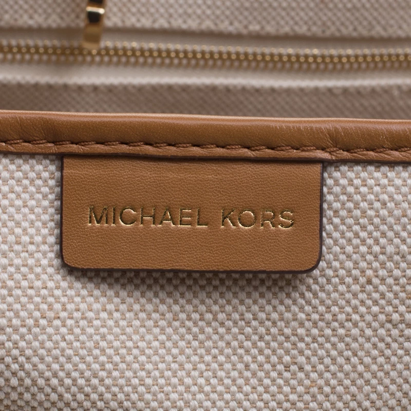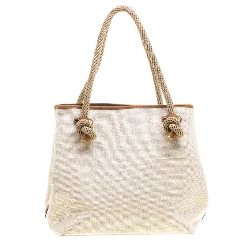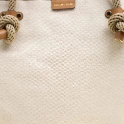 Fashionable and functional, this shopper tote from Michael Kors is what you need to elevate your everyday looks. It is subtly crafted with off-white canvas featuring contrasting leather trims securing the top line, edges, and bottom. It has rope-like dual top handles that form a knot detail. The insides are canvas lined housing multiple pockets.
