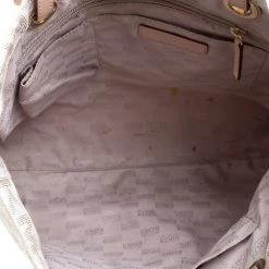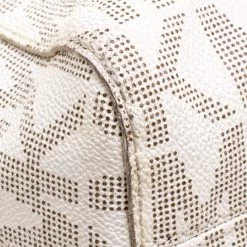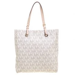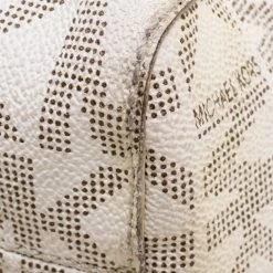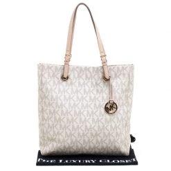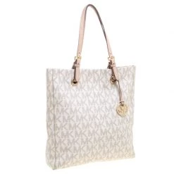 Elevate your style with this gorgeous tote from Michael Kors. Crafted from off white PVC the bag features dual top handles and a Michael Kors charm. It has a spacious fabric lined interior that houses two slip pockets and a zip pocket. This beauty is totally worth the splurge!