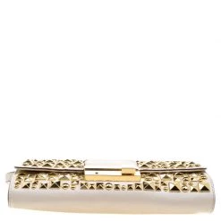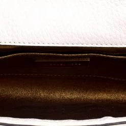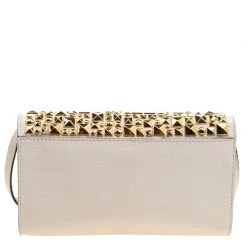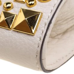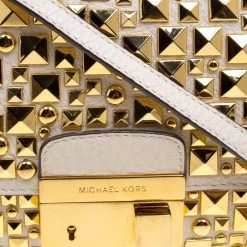 This chic crossbody bag from Michael Kors is worthy of being yours. Crafted from off white leather the bag comes with gold tone stud embellishments on the front flap. The push lock closure opens to a metallic lined leather interior. Carry this stunning bag on all your fashionable outings.