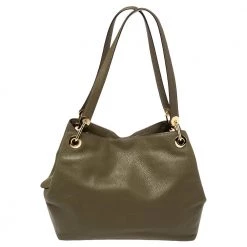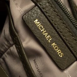 Timelessly elegant and stylish, Michael Kors collections capture the effortless, nonchalant finesse of the modern woman. Crafted from leather in an olive green shade, this chic Raven bag features a spacious compartmentalized interior with a snap-button fastening. The understated silhouette is punctuated with gold-tone hardware and held by dual handles.
