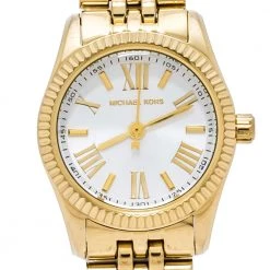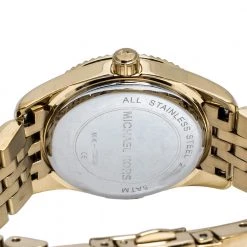 Designed with a fine blend of luxury and craftsmanship, this Lexington watch from Michael Kors is sure to delight your style. In a gold-tone stainless steel body, the watch has a scratch-resistant mineral crystal protecting a white dial that houses hour markers and three hands. The watch functions in a quartz movement, is water-resistant up to 50 meters, and is held by a bracelet with a push-button release.