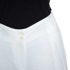 These trousers from Michael Kors are tailored from linen, and it looks great. This white-colored creation flaunts button closure and a wide-leg silhouette. These trousers will look fabulous with a complementing blouse and pointed pumps.