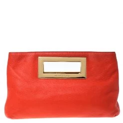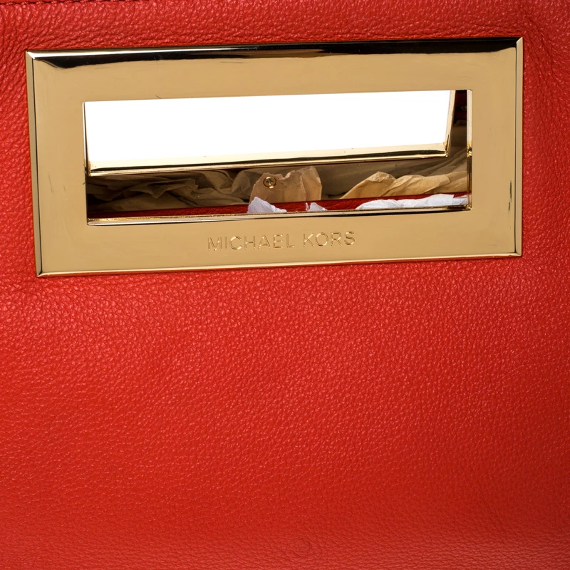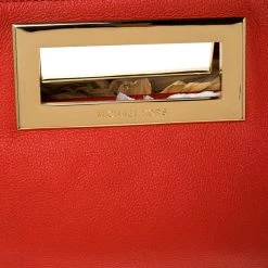This Michael Kors Berkley clutch is sure to be an amazing addition to your closet! The orange piece is crafted from leather and features dual inbuilt gold-tone handles. It opens to a spacious fabric-lined interior that can easily hold all your daily essentials. Carry it with elan!