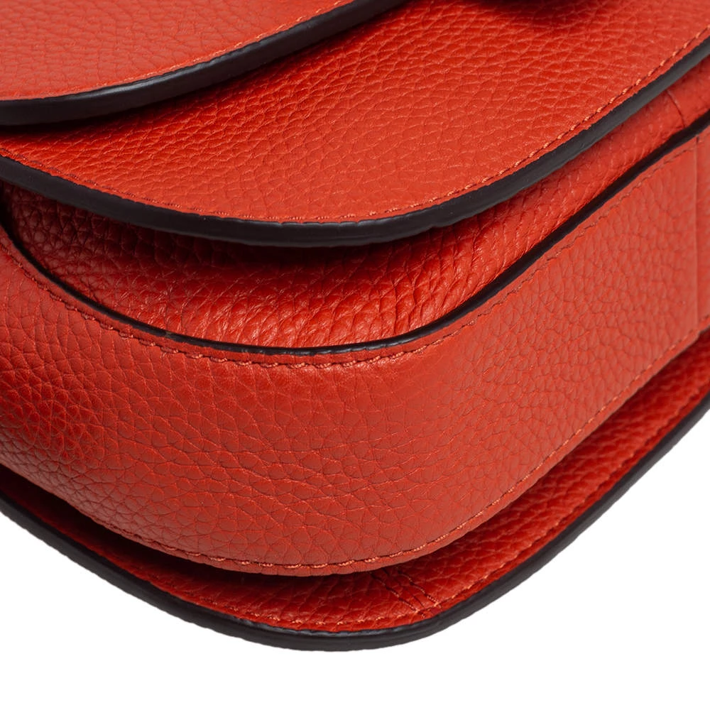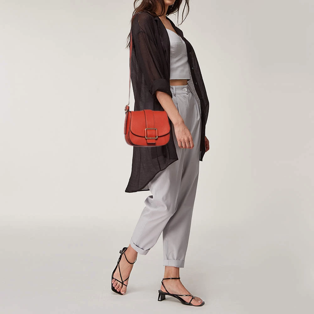 Classic yet chic, this Maxine saddle bag will be your best companion for those day outings. It features an orange leather body and a structured silhouette detailed with gold-tone accents. This bag comes fitted with an adjustable shoulder strap that can be styled to the desired drop. Carry yours for days when you just need essentials say a cell phone, currency and your keys.