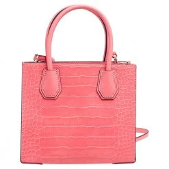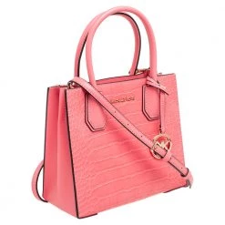 Elegant style and utility combine to form this Mercer bag from the house of Michael Kors. Crafted using peach croc-embossed leather, the mini tote features the brand logo on the front, a lined interior, two handles, and a shoulder strap.
