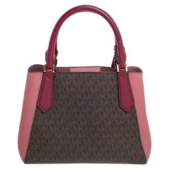 This eye-catching Kimberly tote from Michael Kors is the exemplar of luxury. This elegant and versatile bag, crafted from signature coated canvas and leather, would go perfectly for any occasion. This bag lined with leather is complete with twin top handles and an MK charm in gold-tone metal to the front.