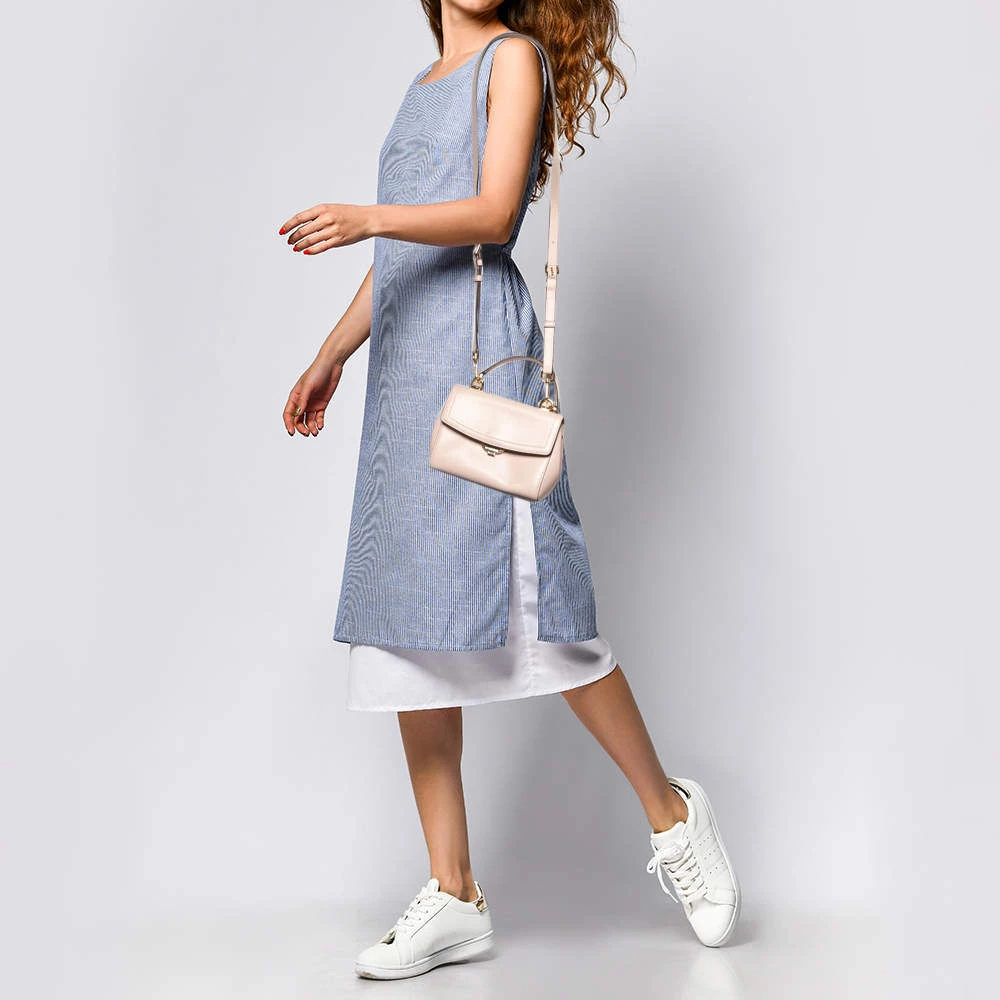 This pink Ava bag comes from the fashion house of Michael Kors. Crafted from leather, it features a durable fabric interior that ensures to house your lipstick, wallet, and other essentials. Designed with a flap closure, it flaunts a gold-tone brand logo at the front, a top handle and a shoulder strap.