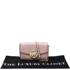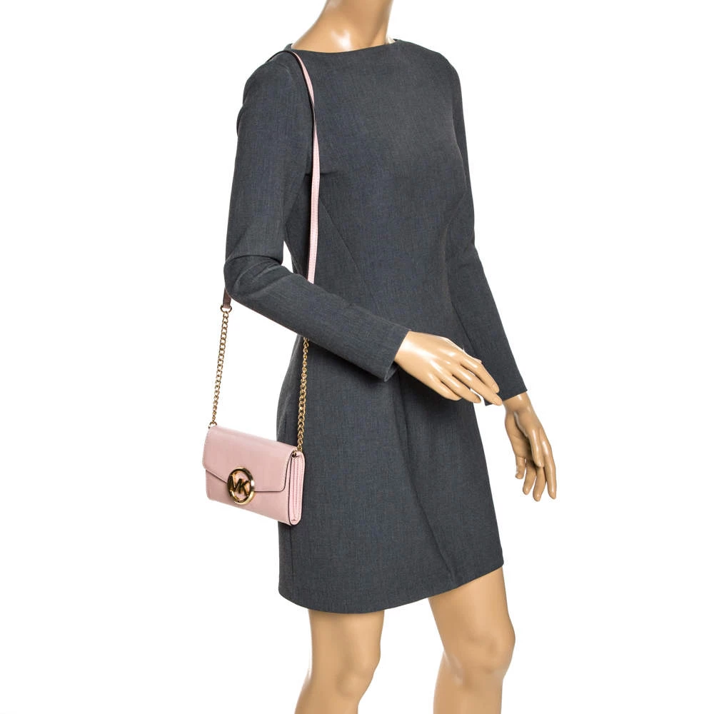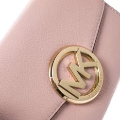 This pretty pink bag by Michael Kors has been crafted from leather. It features a shoulder strap, gold-tone hardware and brand detail on the flap that opens up to a spacious compartment housing card slots. It can be carried as a crossbody bag or on the shoulder.