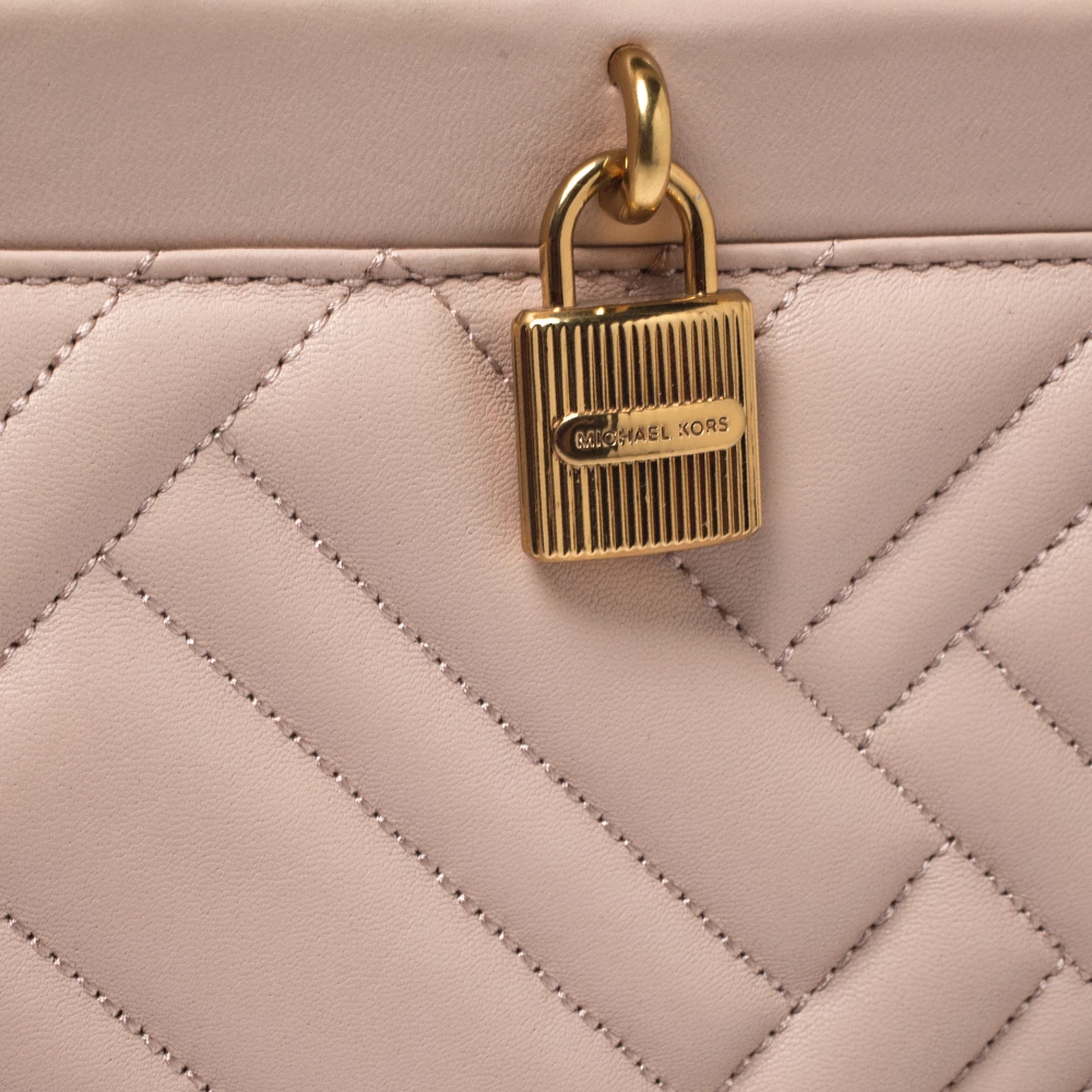 Crafted with the finest leather, this bag is the perfect accessory to accentuate your style quotient this season. The plush nylon lining of the bag helps you carry all your essentials safely. This pink handbag by Michael Kors is the perfect companion for the fashionable woman.