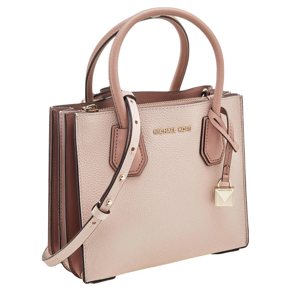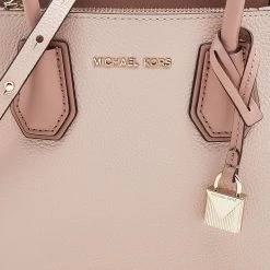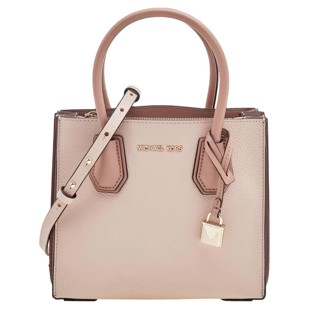 Made from pink leather, this Michael Kors tote brings a convenient size and a refined appeal. It features two handles, a detachable strap, gold-tone hardware, and a lined interior.