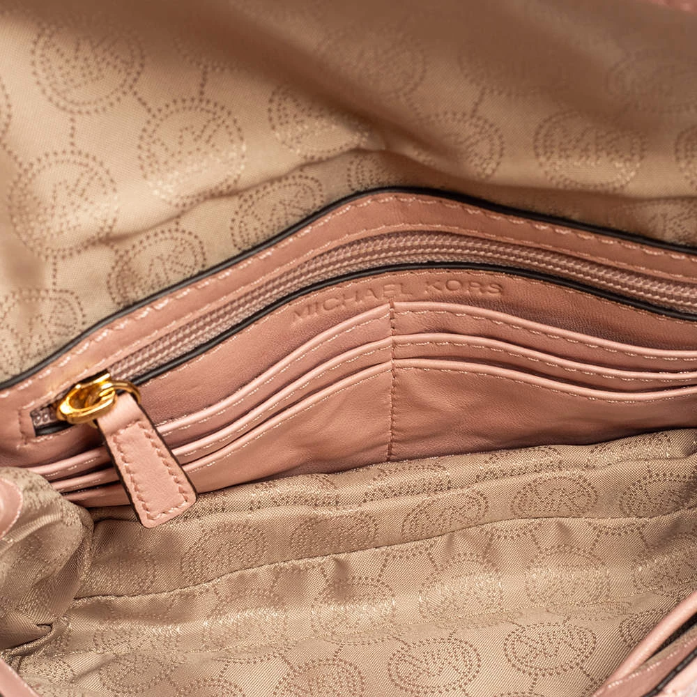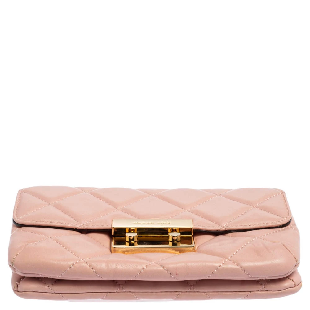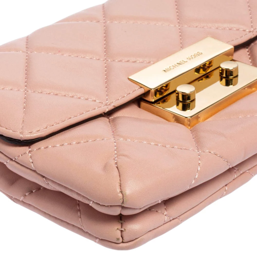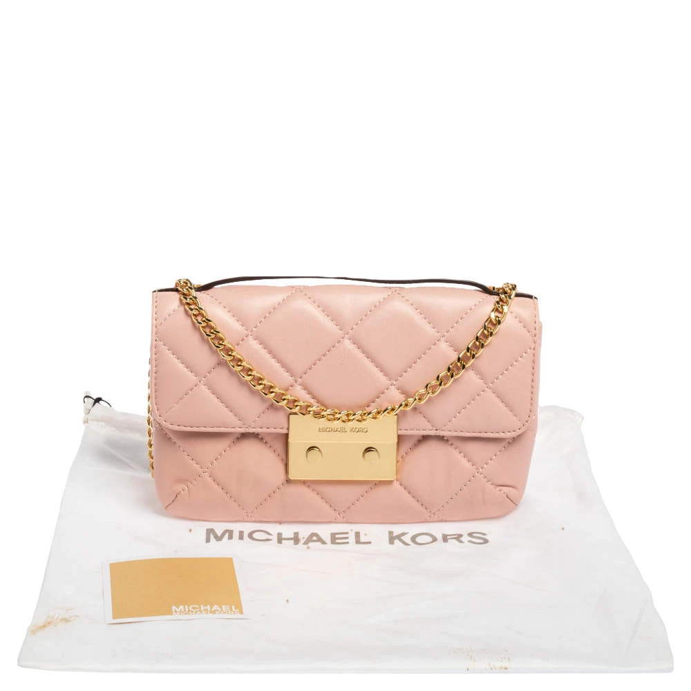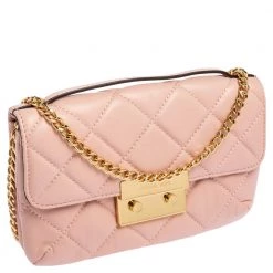 You will enjoy parading this pink Sloan bag from Michael Kors. Made from quilted leather, it features a shoulder chain, a flat top handle, and a metal lock on the flap. The bag is complete with a nylon-lined interior sized to easily hold all your daily essentials.