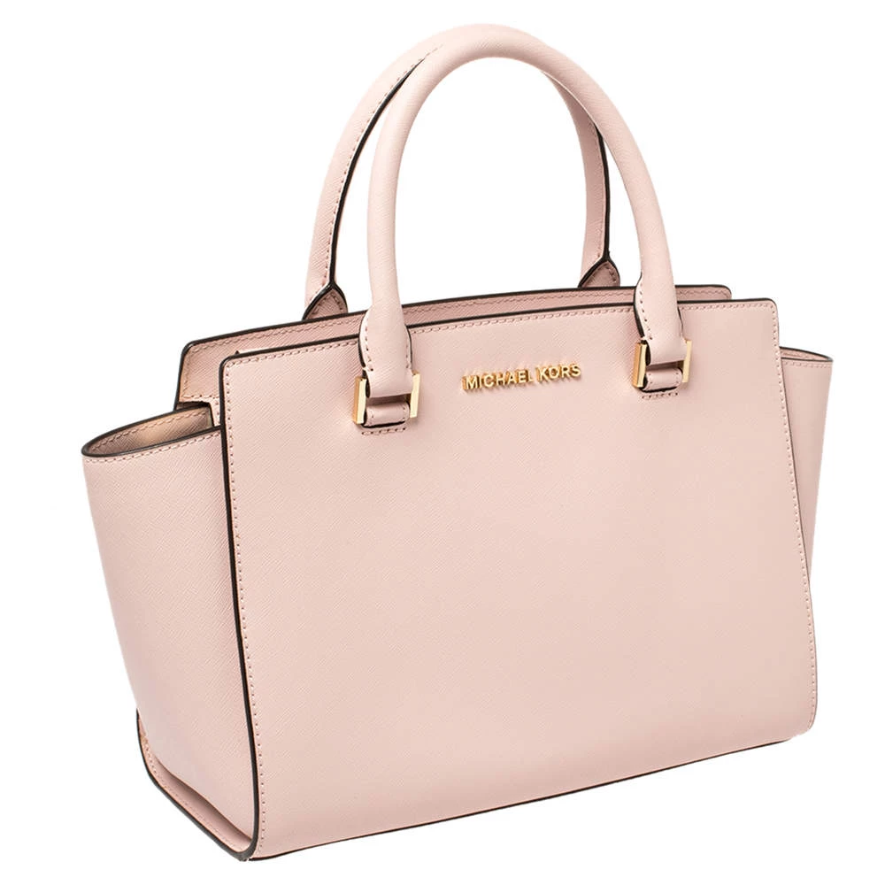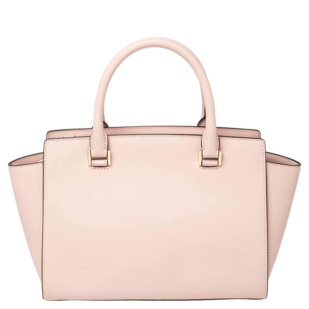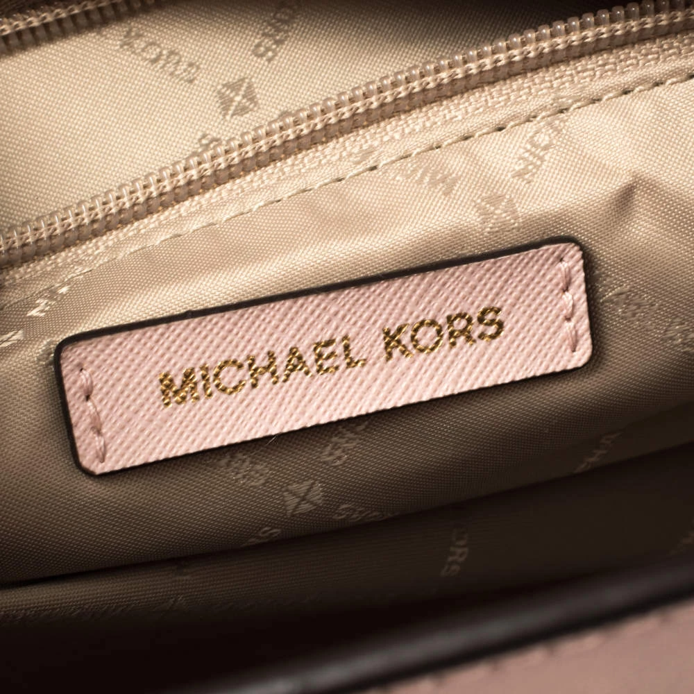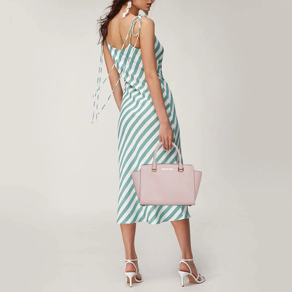 This adorable Selma tote from Michael Kors is both elegant and fashionable. Crafted from pink leather, the bag features two top handles. The nylon-lined interior houses a zip pocket and will hold your essentials. This exquisite bag will complete all your ensembles.