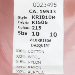 - Fabric: 38% Cotton , 33% Wool, 18% Nylon , 9% Rayon, 2% Acrylic