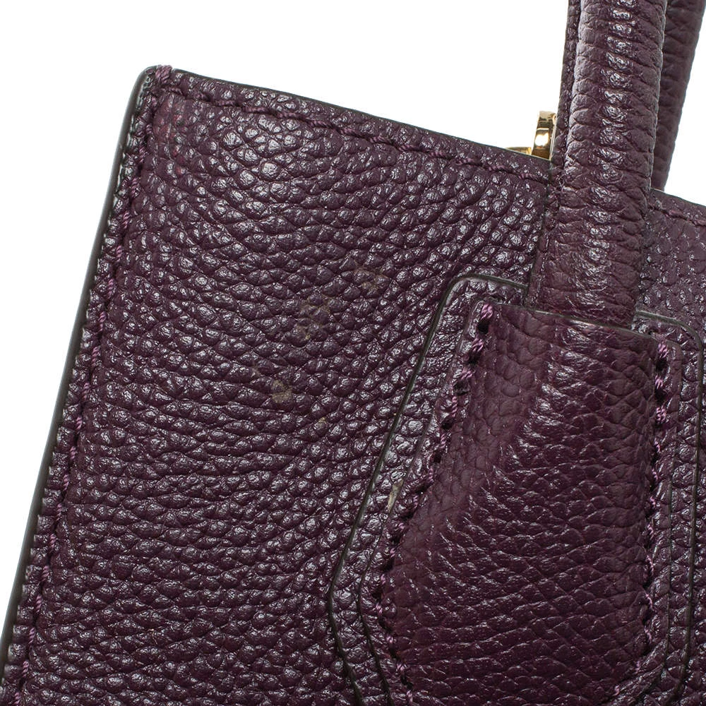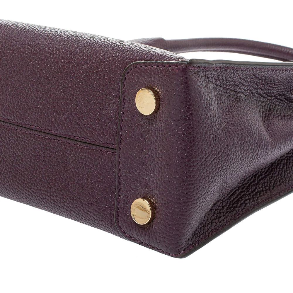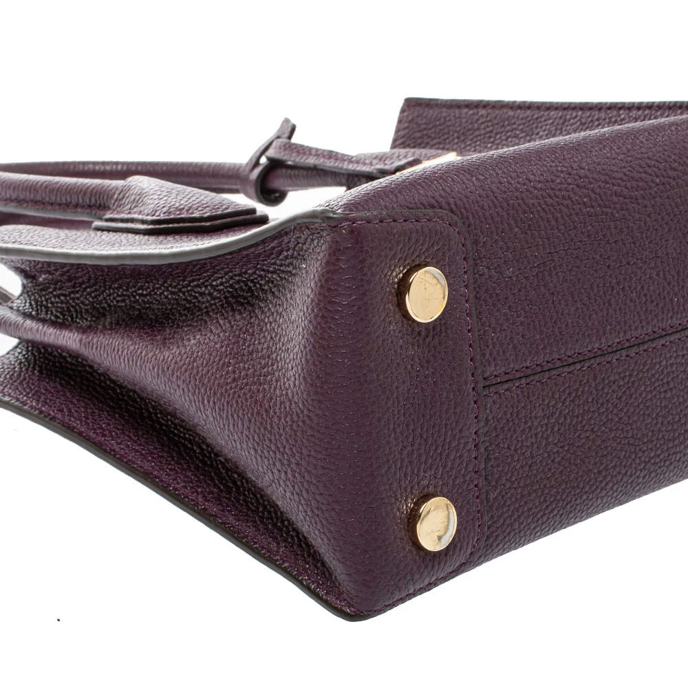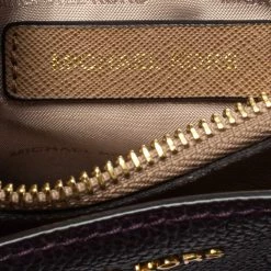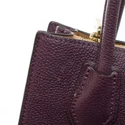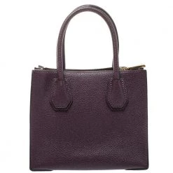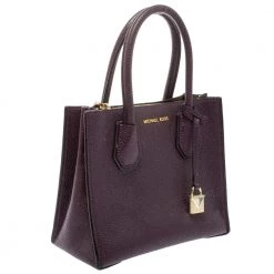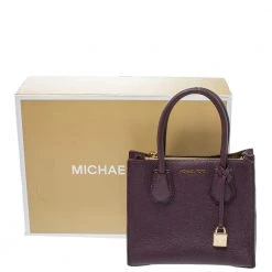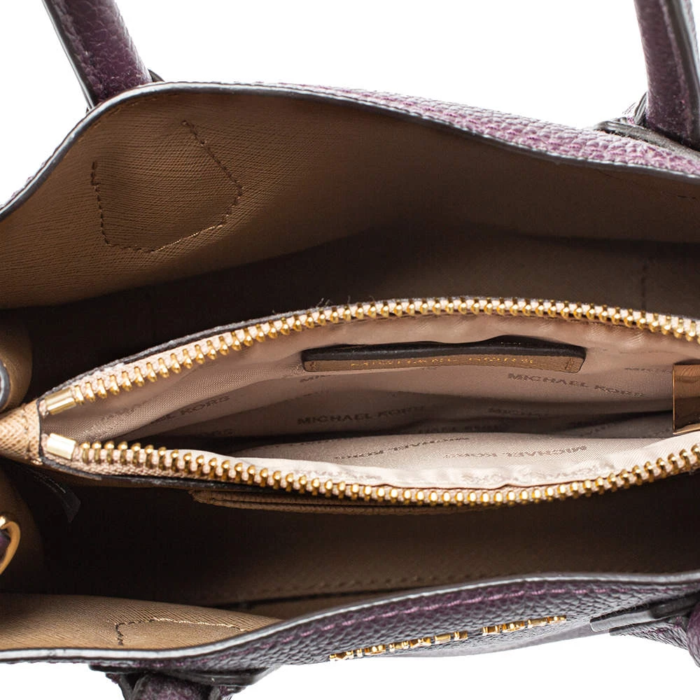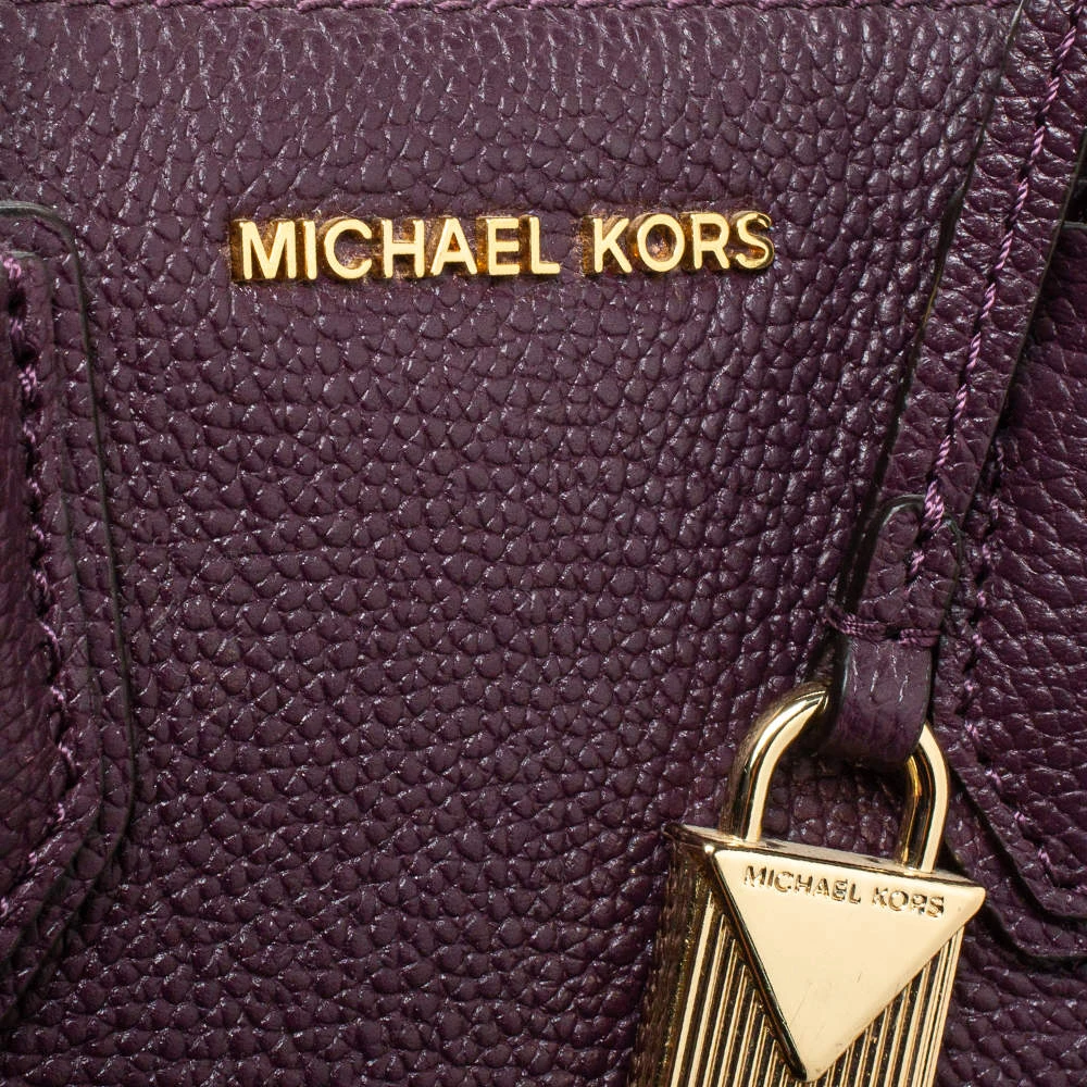 Featuring a chic and fabulous style, this Michael Michael Kors tote is modern. Crafted from textured leather in stunning purple, the tote features dual handles, a removable shoulder strap, and a padlock. It opens to a spacious leather & fabric interior divided by a zipped compartment. The tote comes with protective metal feet and you are sure to love swinging this beauty.