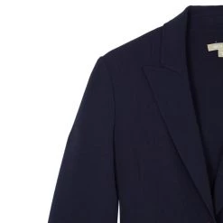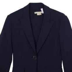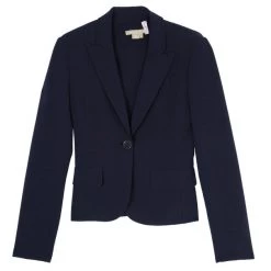 Colored with a stately autumn plum shade, this Michael Kors dress suit will keep your confidence high and powerful. Made from a wool blend, this suit features a sleeveless dress with a classic cut, off-shoulder straps, and a classy v-neck. Topping it off is its perfect single-breasted jacket with lapel collars, a single button, and double front flap pockets. Its knee-length hemline and back zipper make this versatile piece a must-have for an elegant wardrobe.