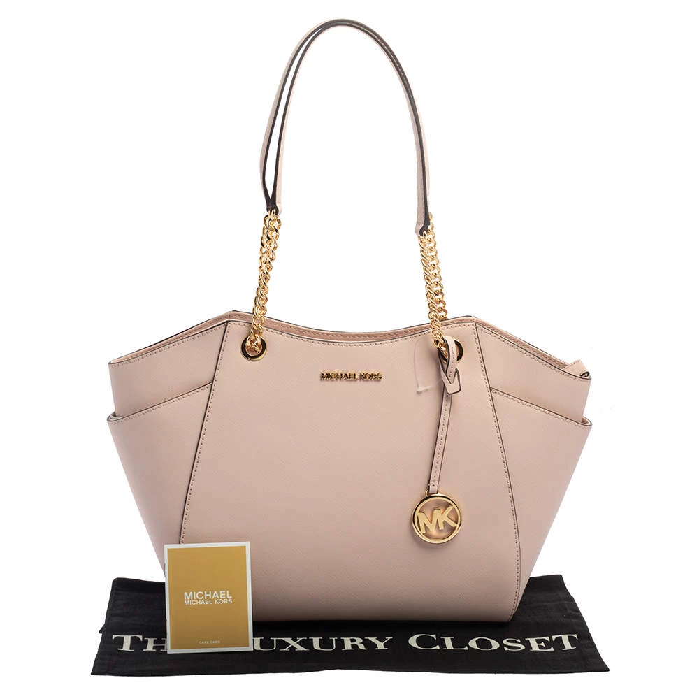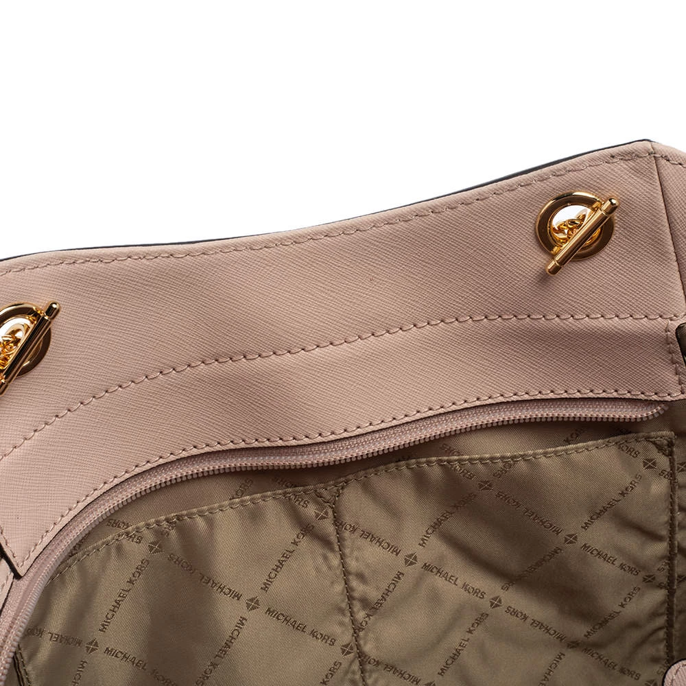 This Michael Kors tote is beautiful in so many ways. From its design to its structure, the bag exudes charm and high fashion. Rendered in leather, the creation features side pockets and chain-accented straps. The nylon-lined spacious interior makes the tote ideal for daily use.