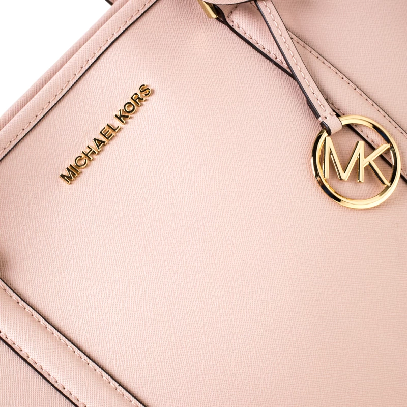Deserving a very special place in your closet is this Sady tote from Michael Kors. The powder pink bag is crafted from leather and features dual top handles with an attached MK charm. The zip-top closure opens to a spacious nylon-lined interior capable of holding all your daily essentials.
