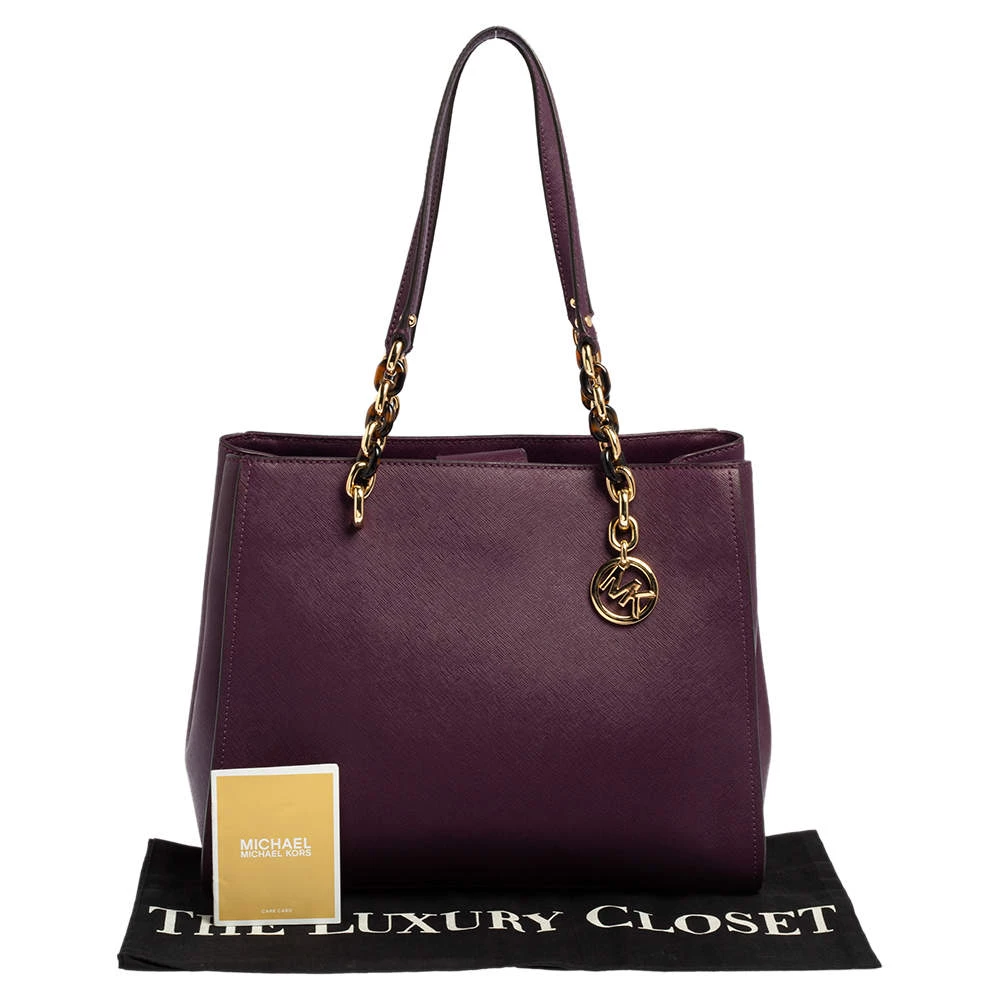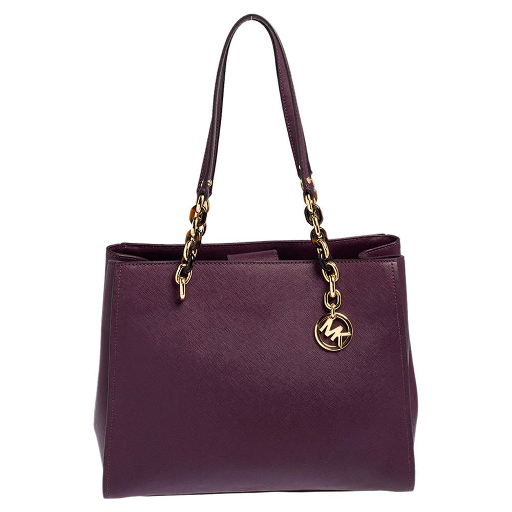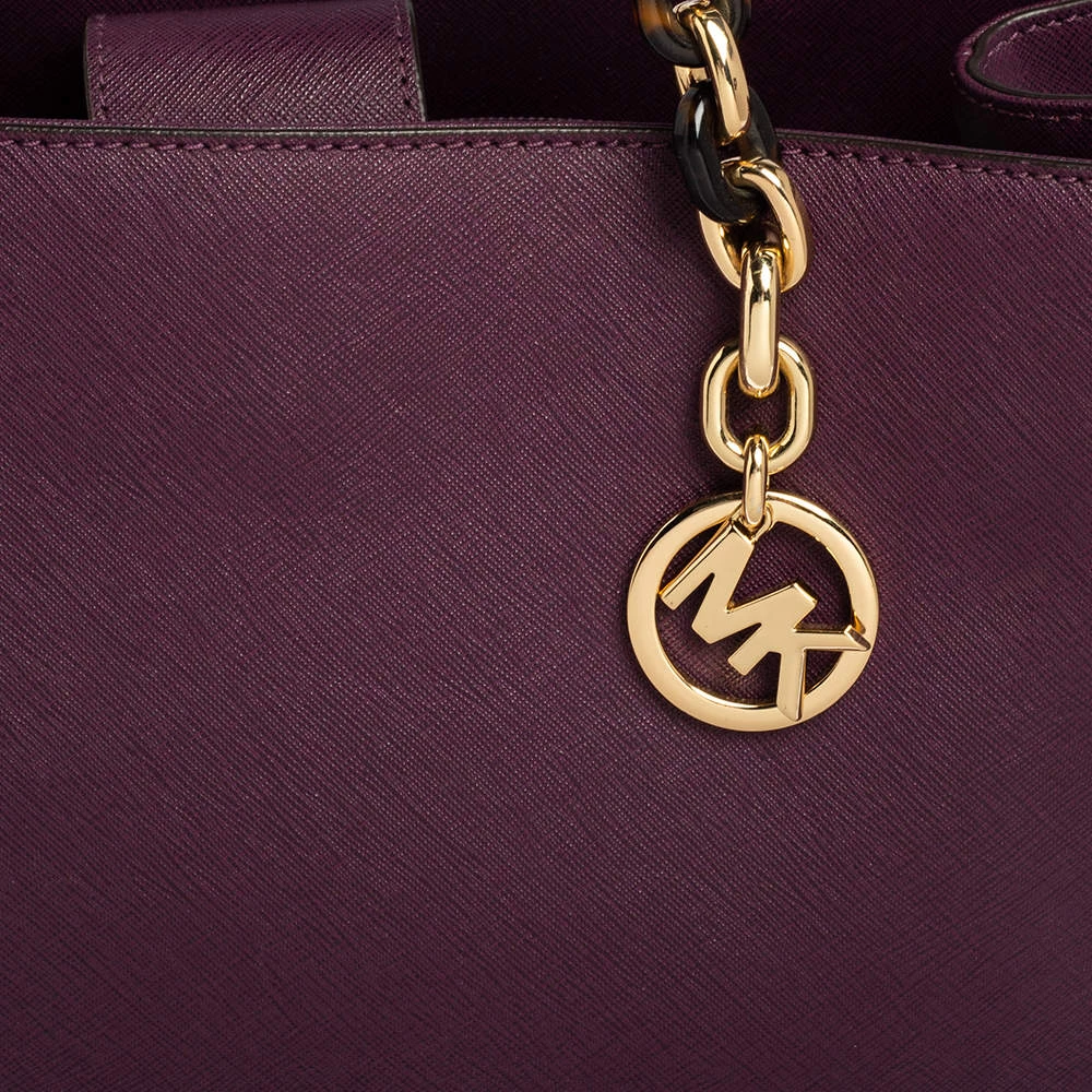 This lovely Sofia tote by Michael Kors is stunning. Crafted from quality leather, it comes in a lovely shade of purple. It features dual handles, a fabric-lined interior with more than enough space for your essentials. It is finished with the MK logo and gold-tone hardware.
