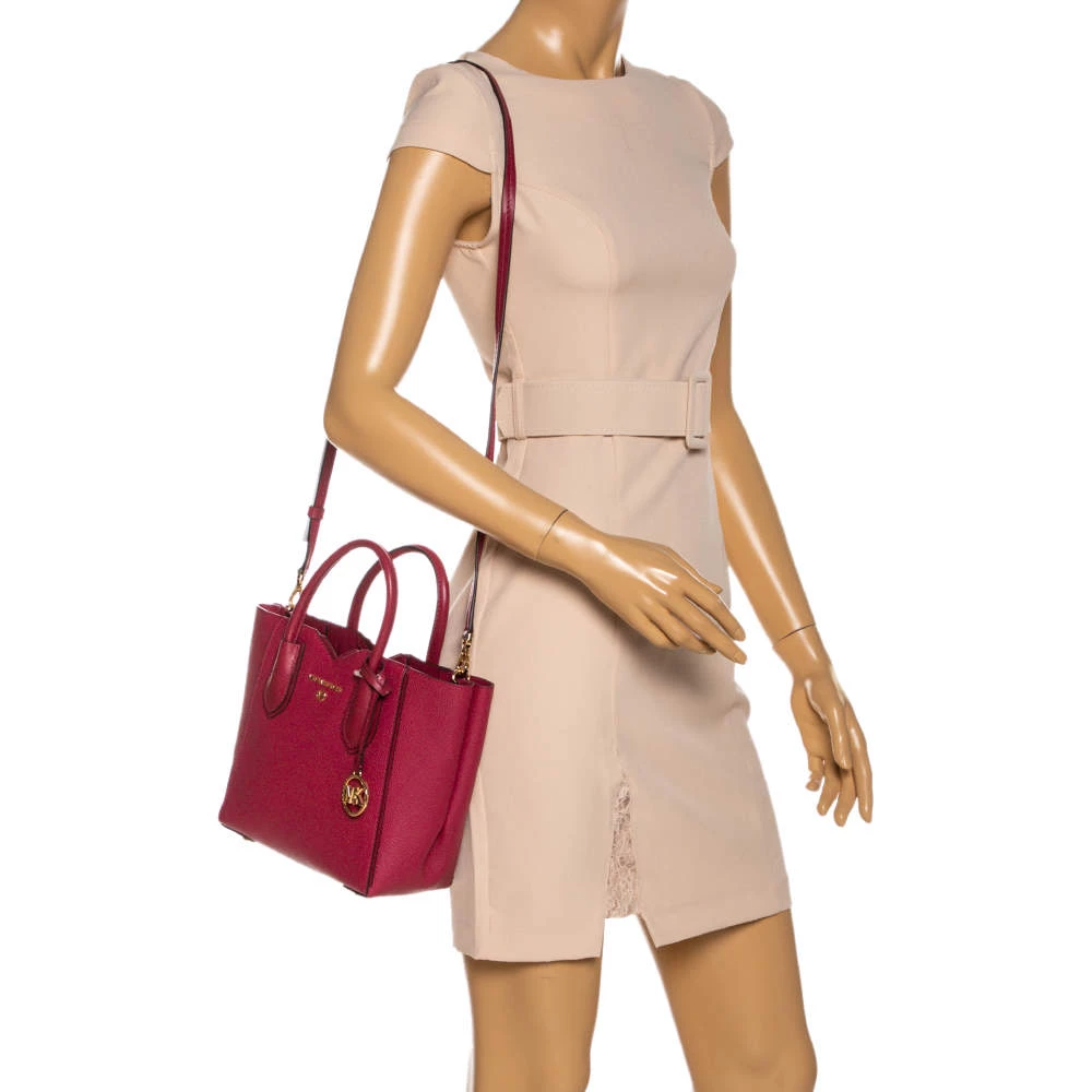 Masterfully crafted in a leather, this bag can easily hold more than just essentials. The leather lining ensures the your valuables are safe. Known for its high standard and fine finish, this handbag from Michael Kors will be your companion for years to come. This elegant bag in red will look perfect with multiple attires.